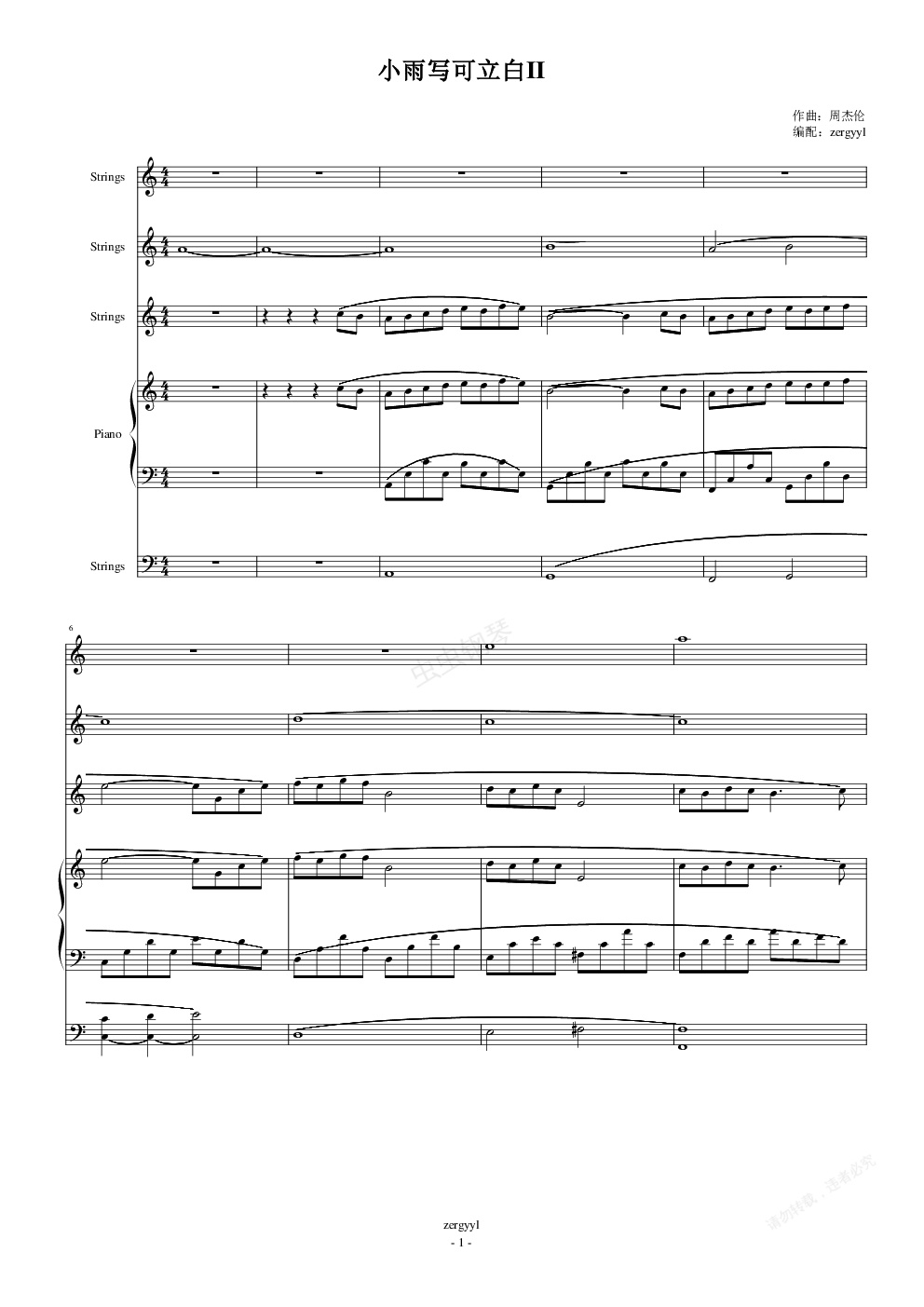 钢琴谱:[zergyyl] 小雨写可立白II