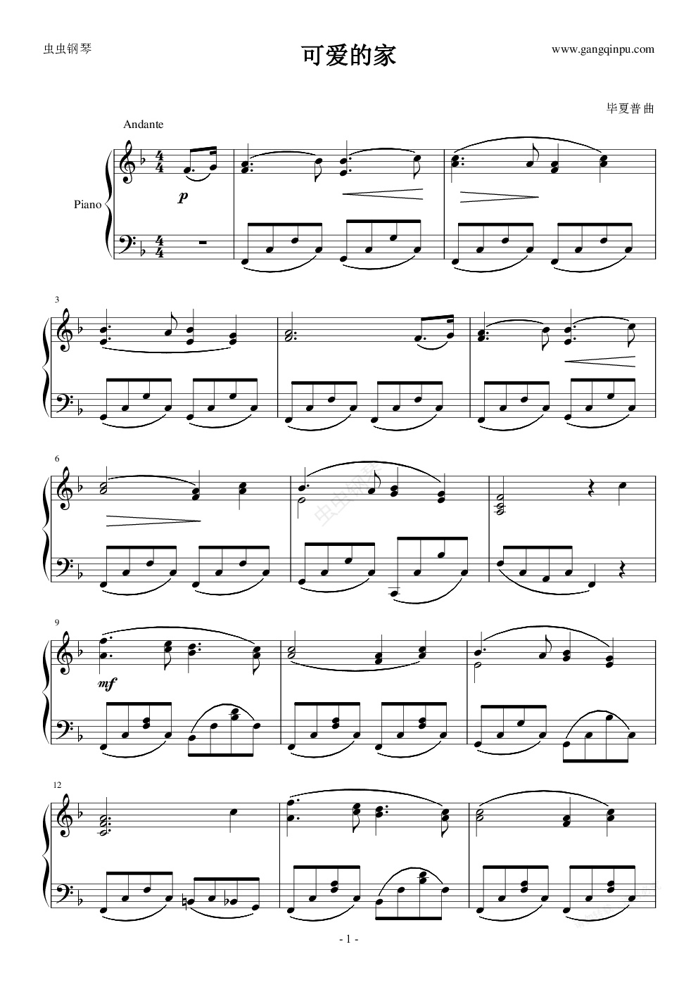 钢琴谱:可爱的家