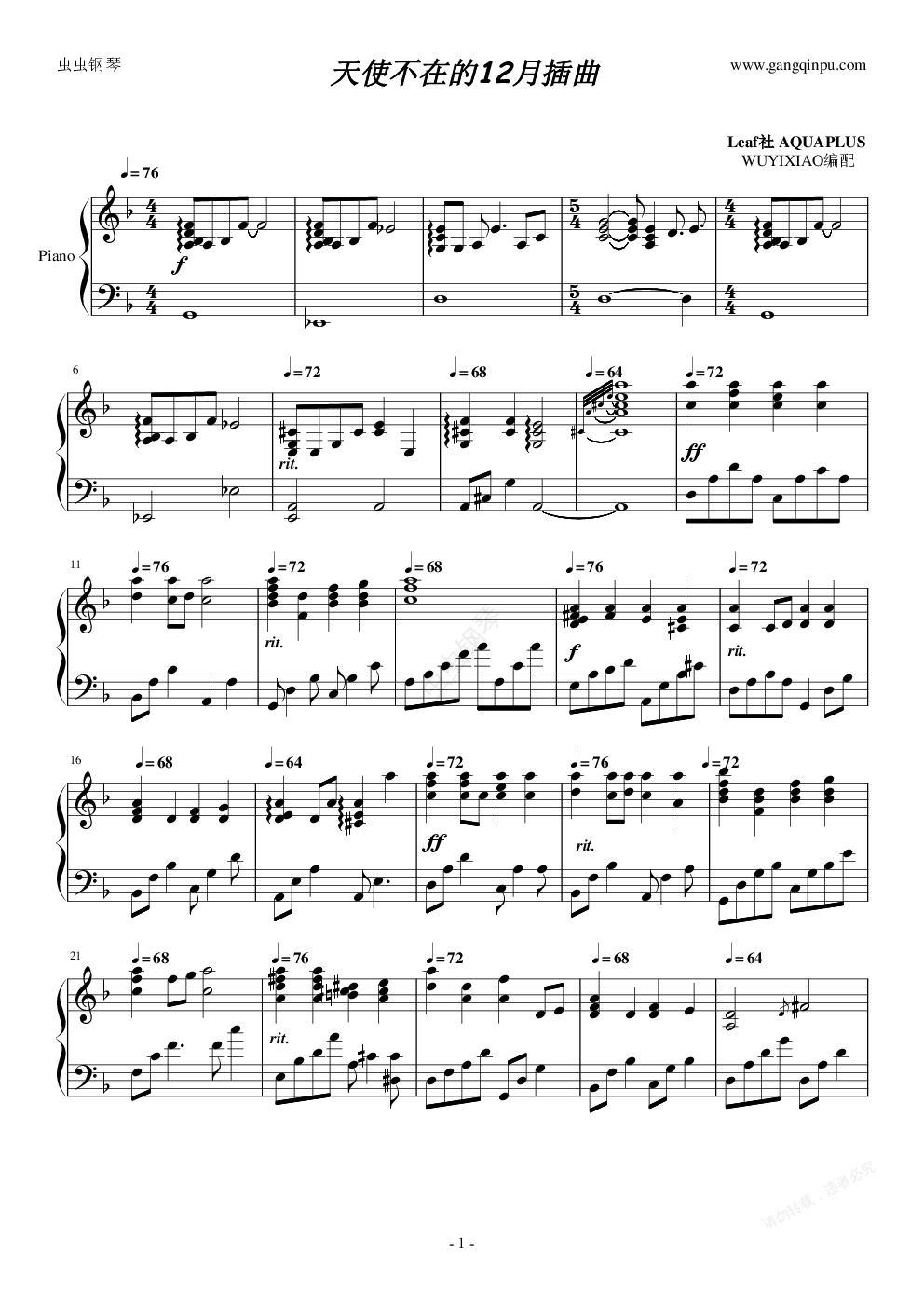 钢琴谱:天使不在的12月插曲