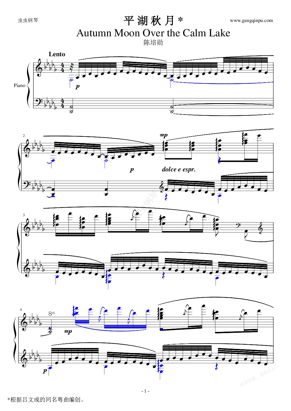 钢琴谱:平湖秋月