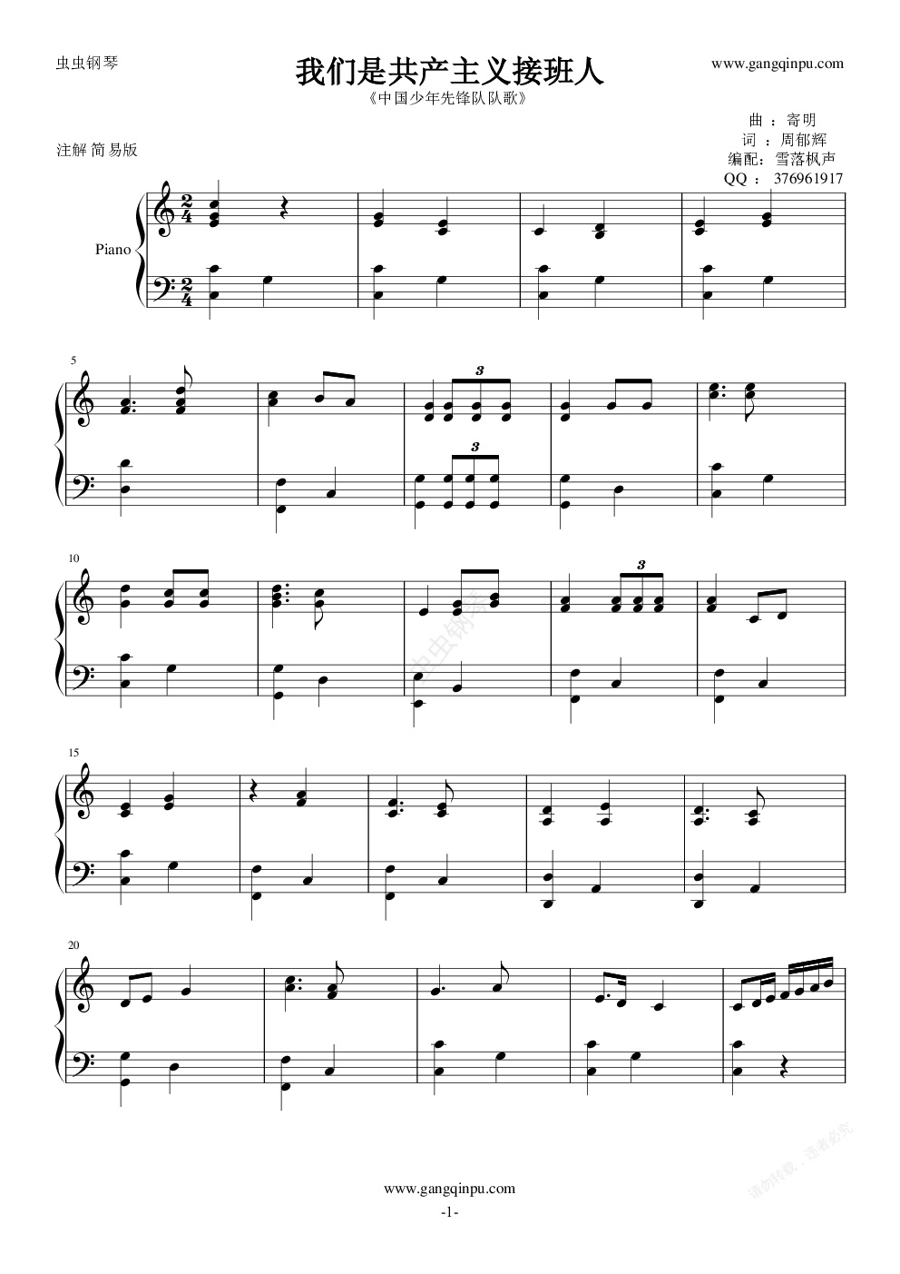 钢琴谱:我们是共产主义接班人