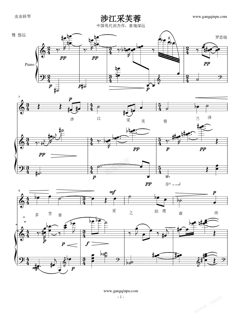 钢琴谱:古诗十九首之涉江采芙蓉(现代派)