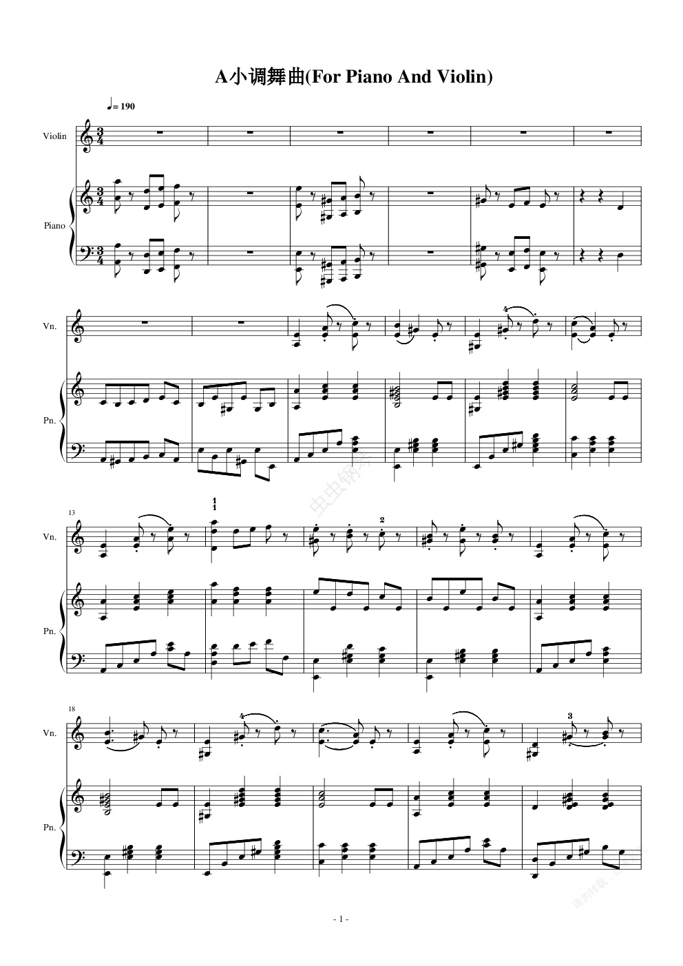 钢琴谱:H14-A小调舞曲(For Piano And Violin)