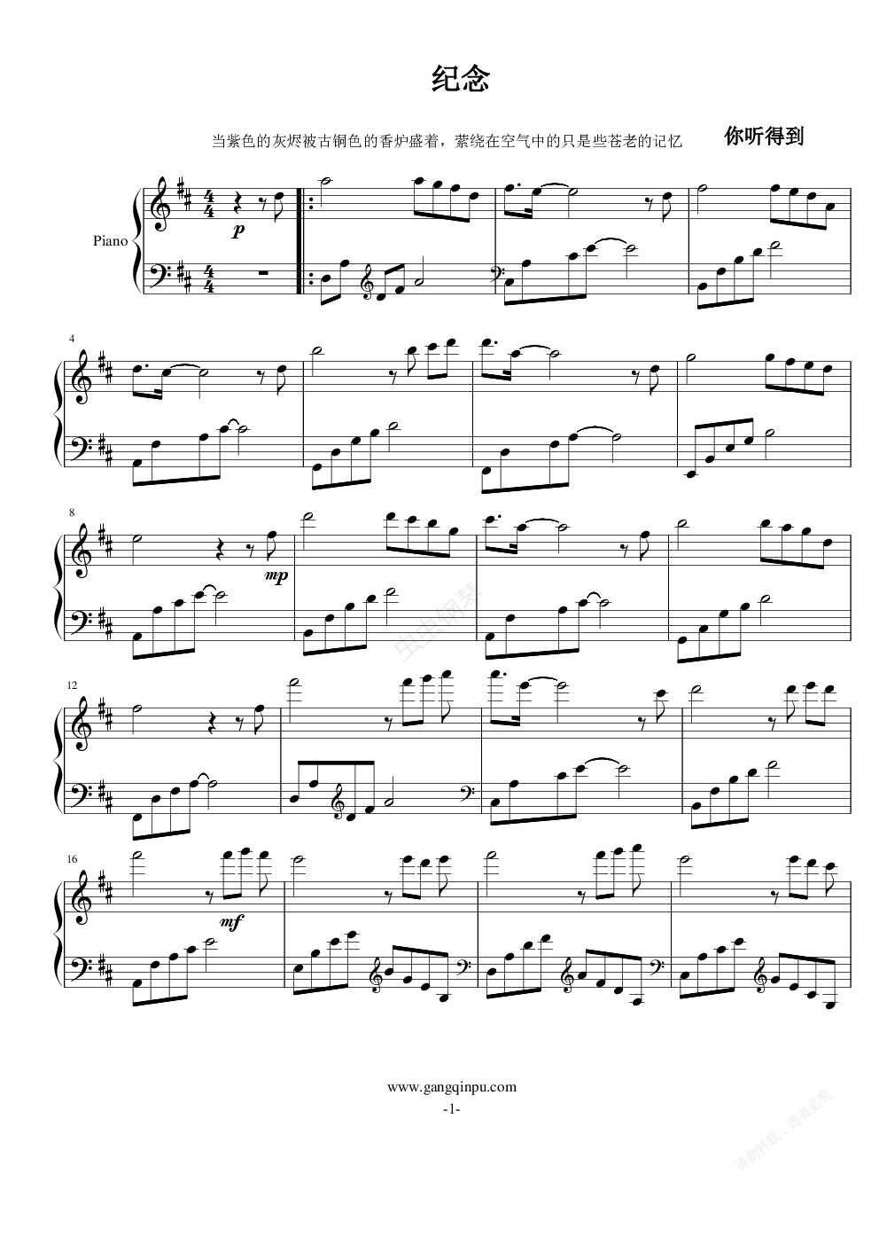 钢琴谱:纪念