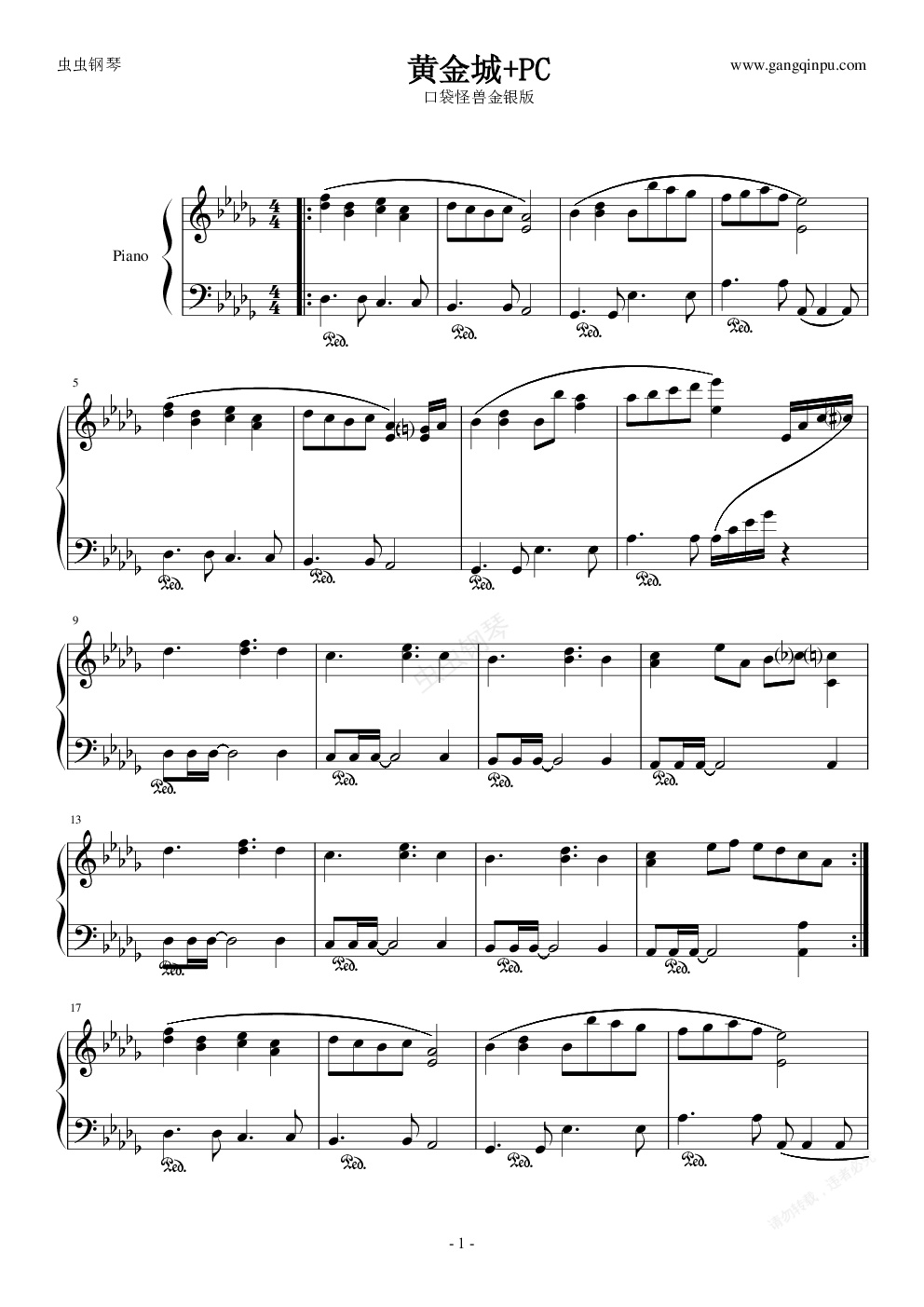 钢琴谱:黄金城PCC 口袋怪兽金银版