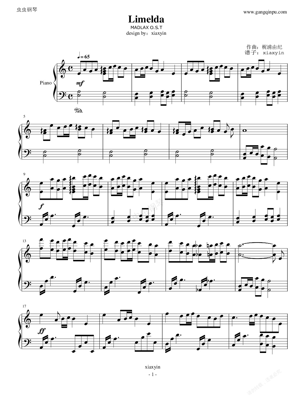 钢琴谱:梶浦由记 - MADLAX - Limelda