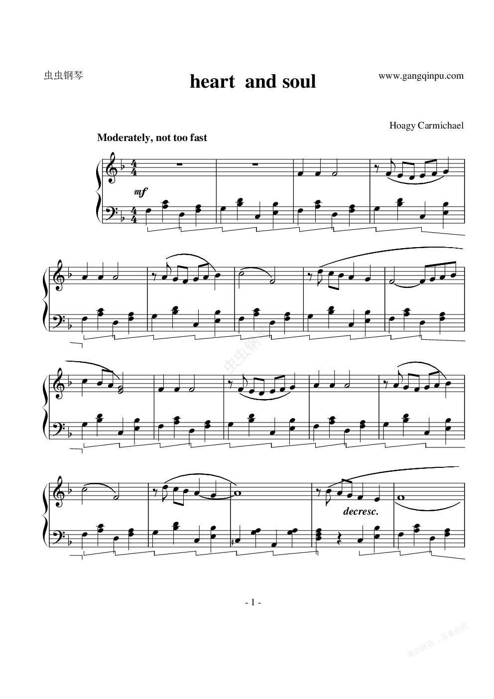 钢琴谱:heart and soul(超人归来、咖啡王子一号店插曲)