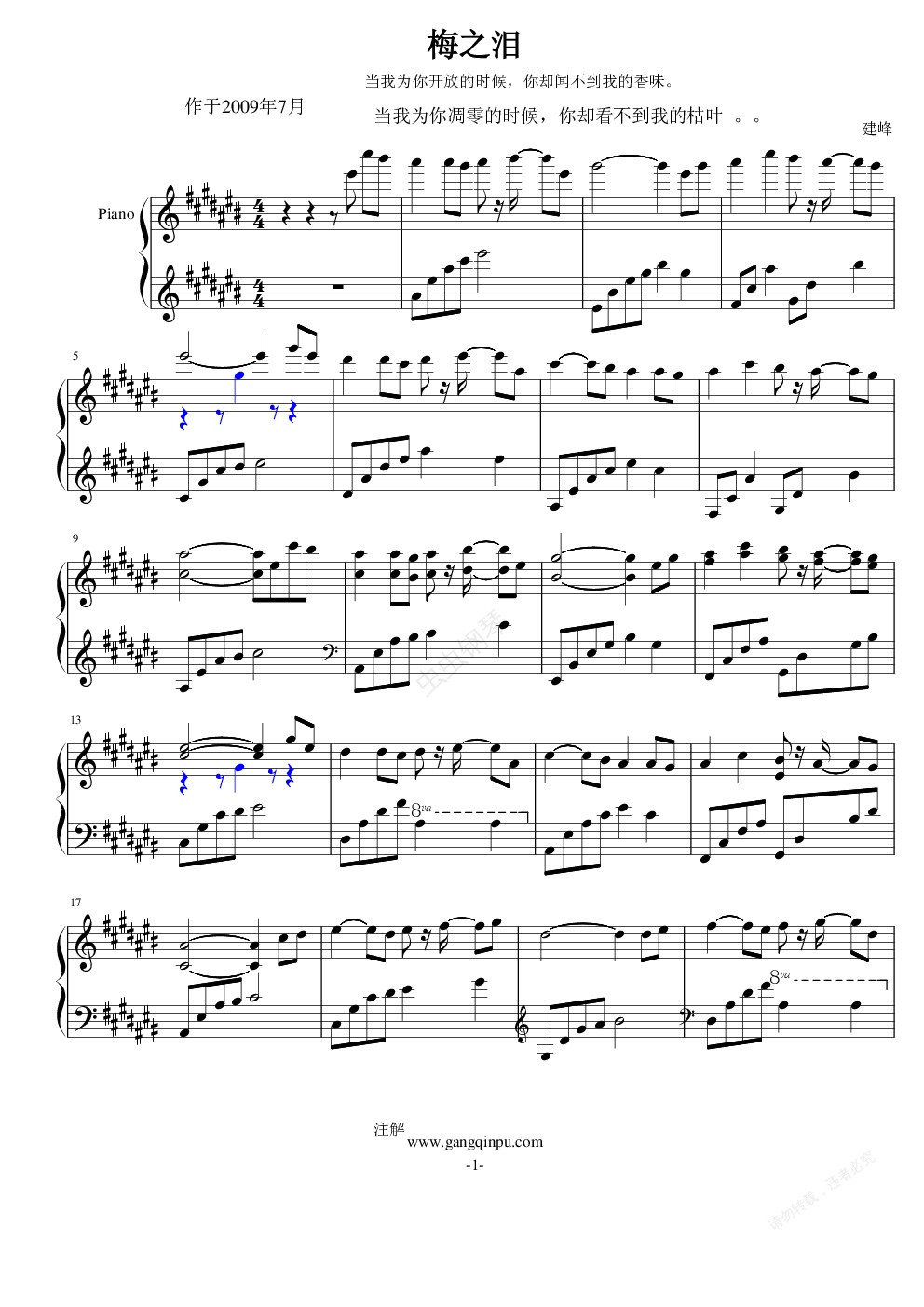 钢琴谱:梅之泪