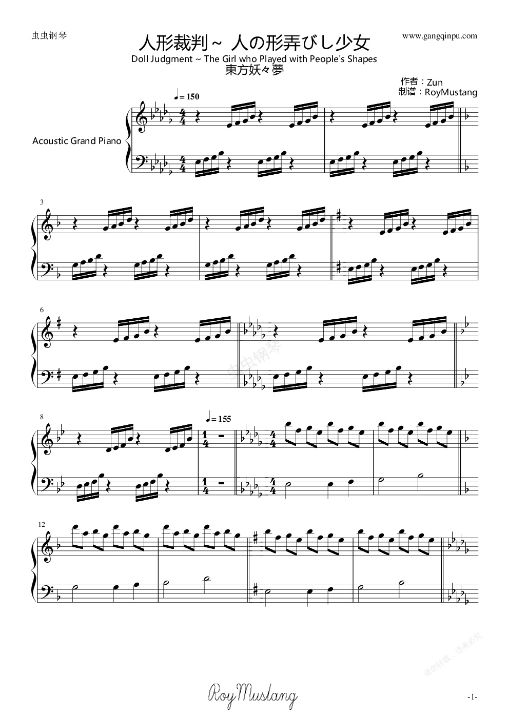 钢琴谱:[東方妖々夢]人形裁判~人の形弄びし少女