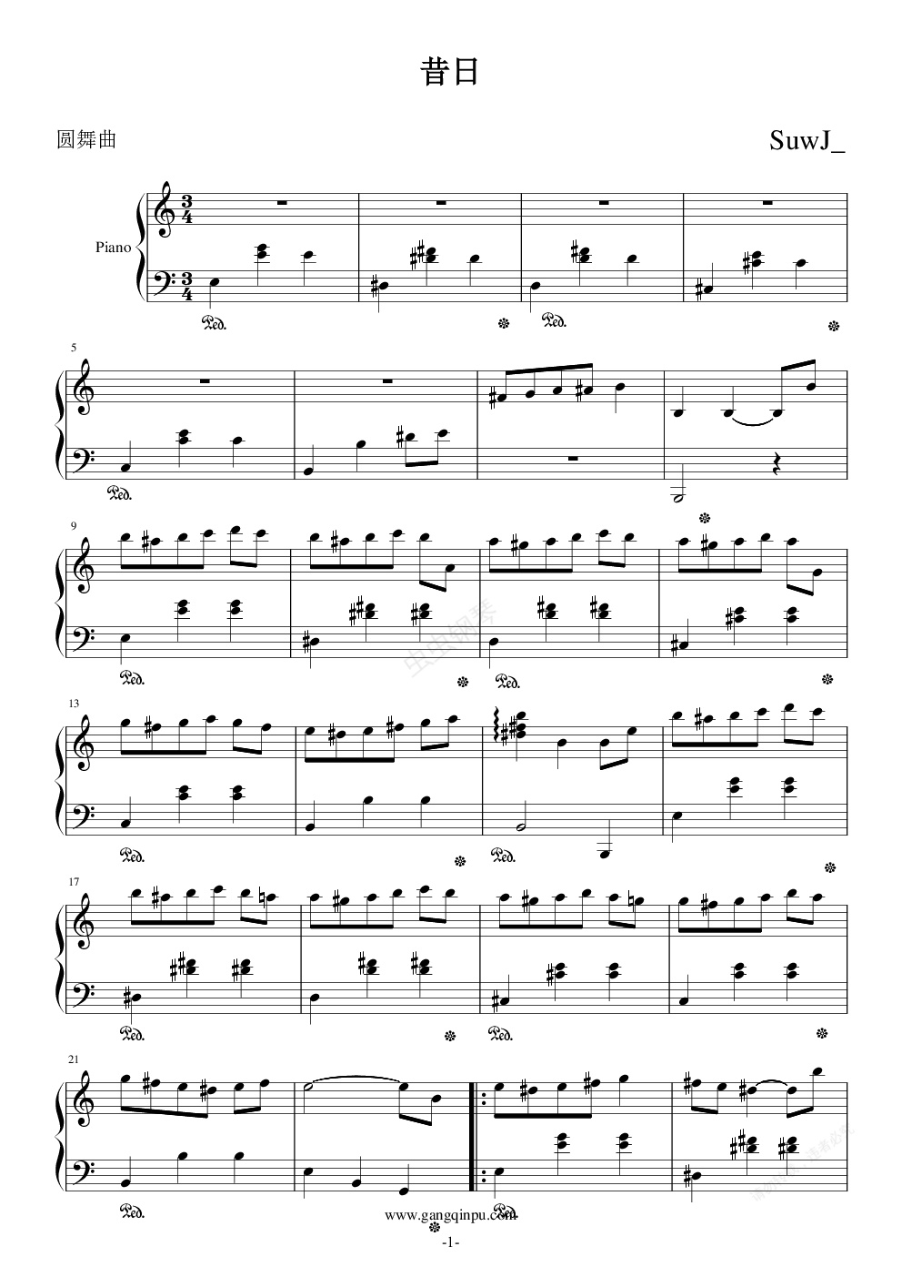 钢琴谱:昔日圆舞曲