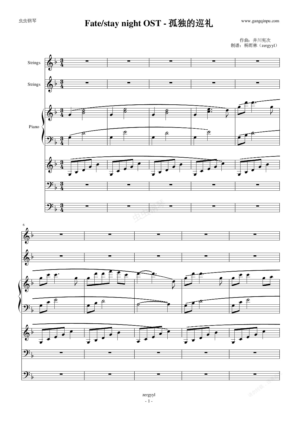 钢琴谱:Fate / stay night OST  孤独的巡礼