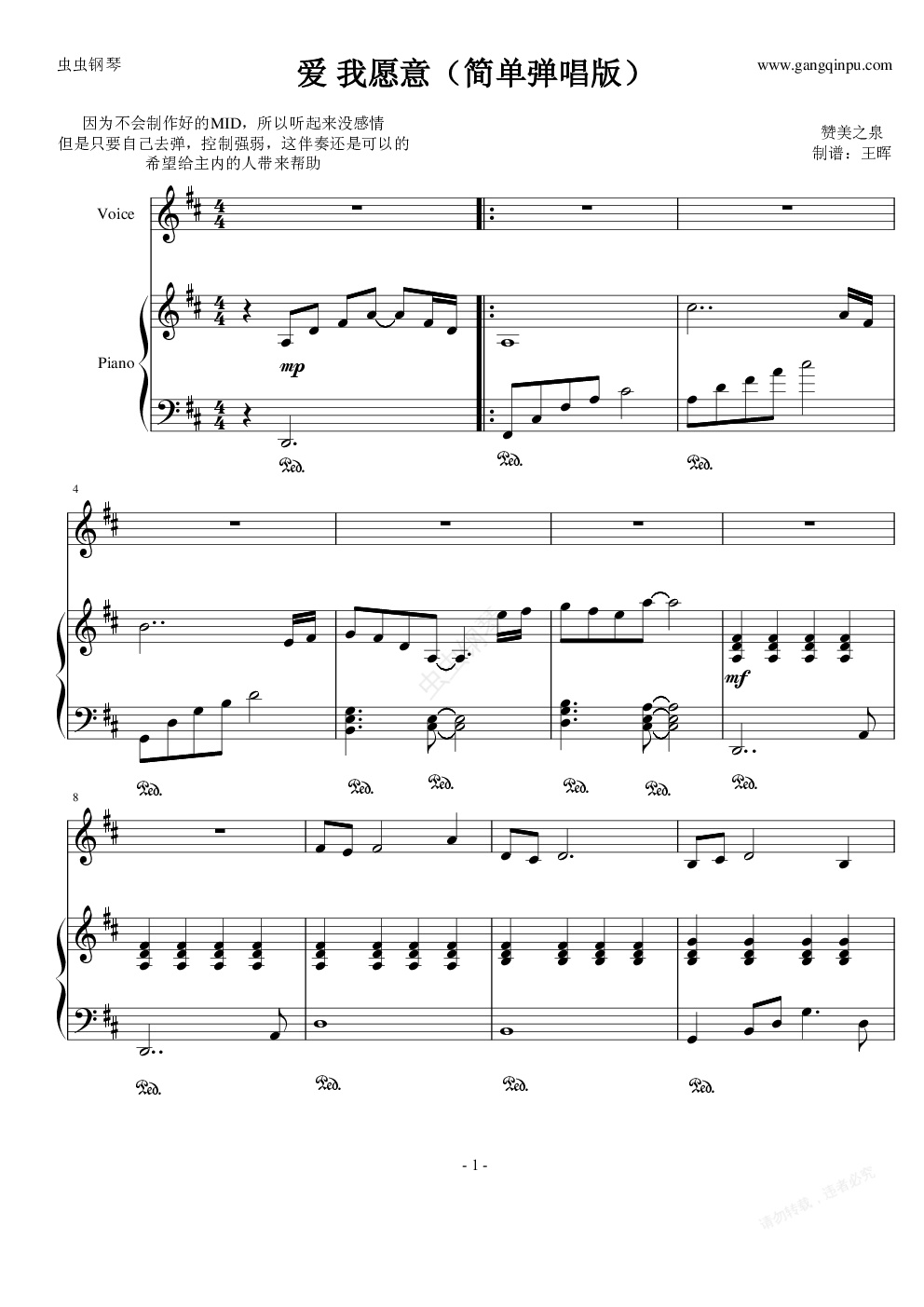 钢琴谱:赞美之泉~爱 我愿意(简单弹唱版)