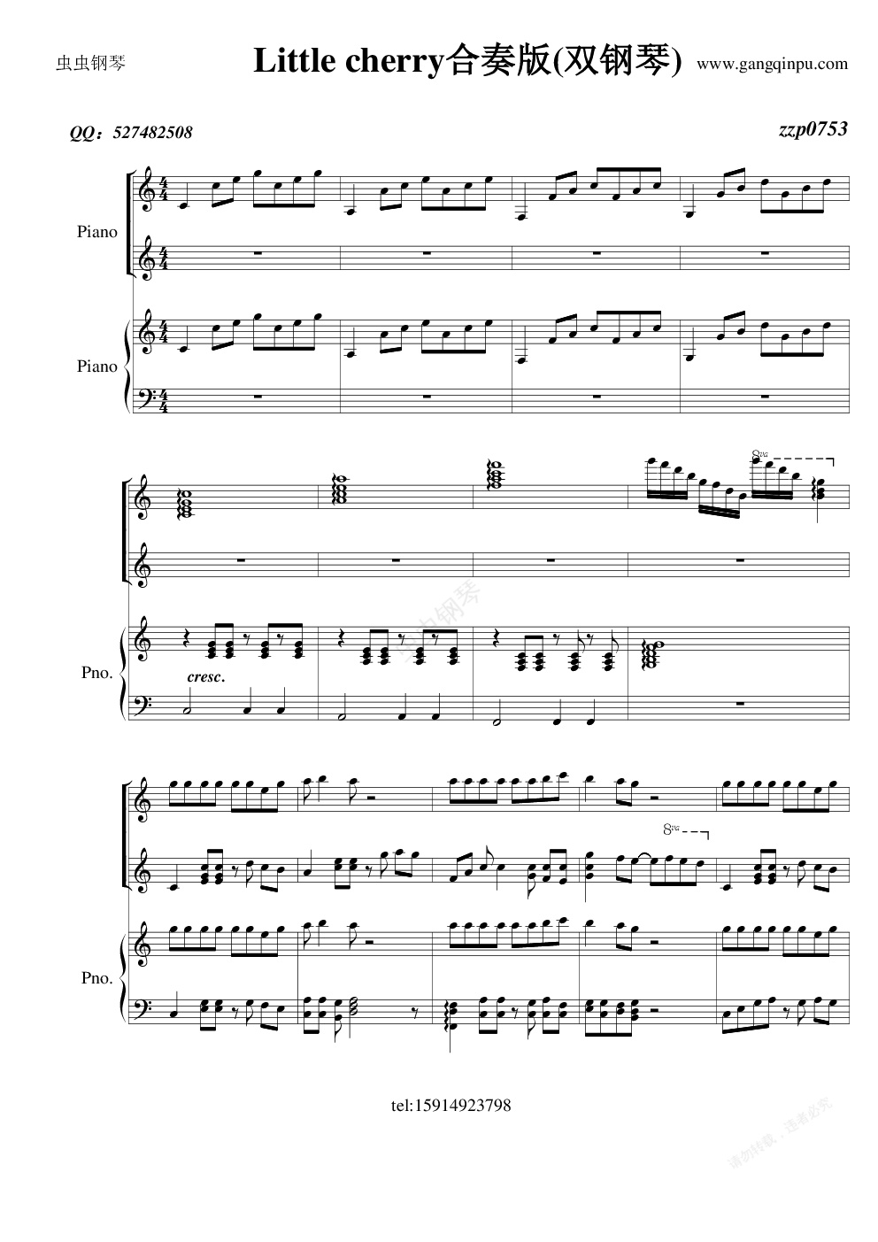 钢琴谱:Little cherry 合奏版(双钢琴)