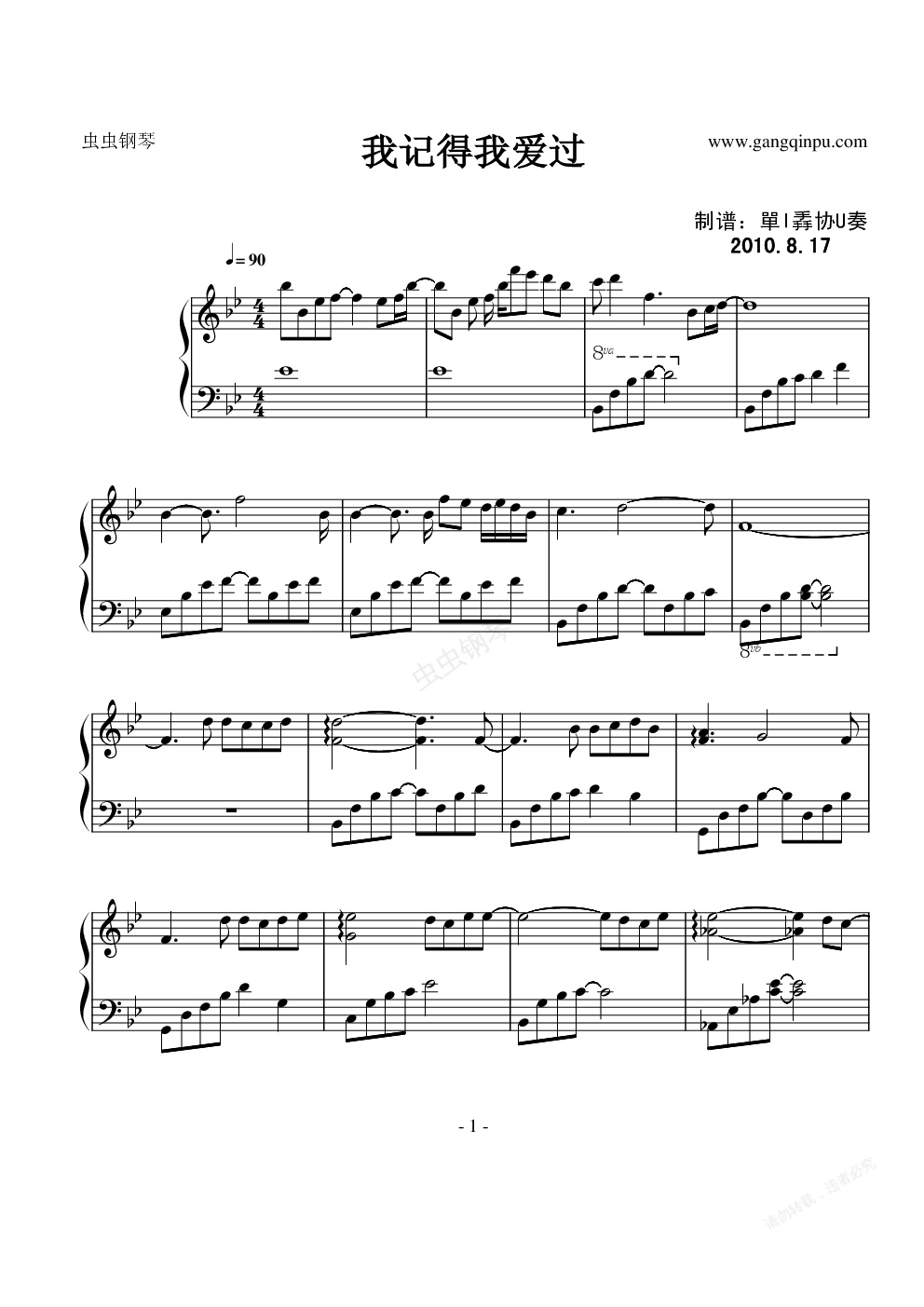 钢琴谱:我记得我爱过