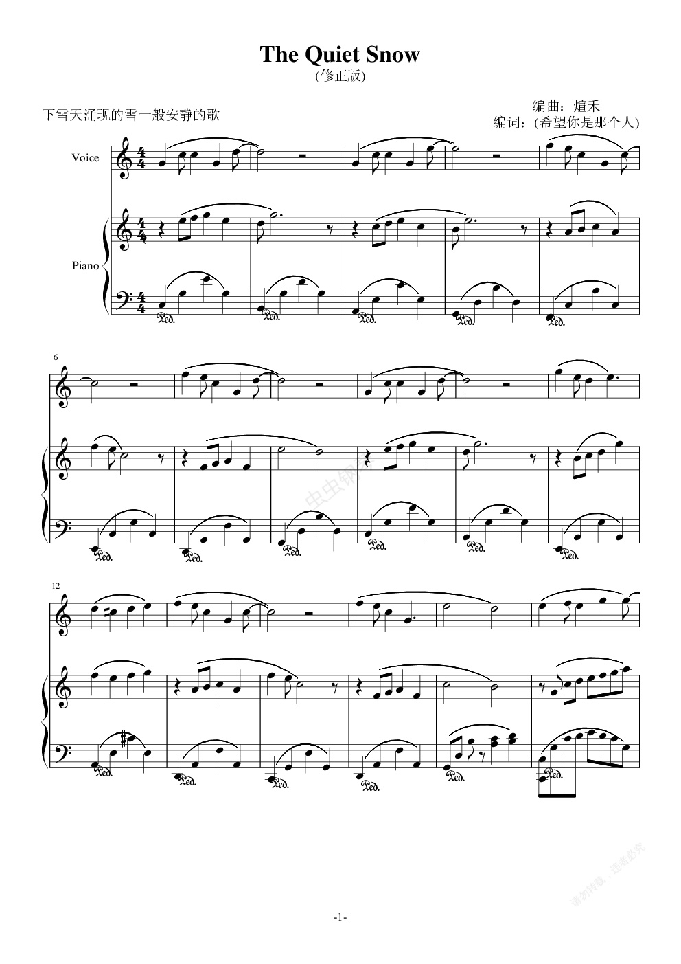 钢琴谱:The quiet snow