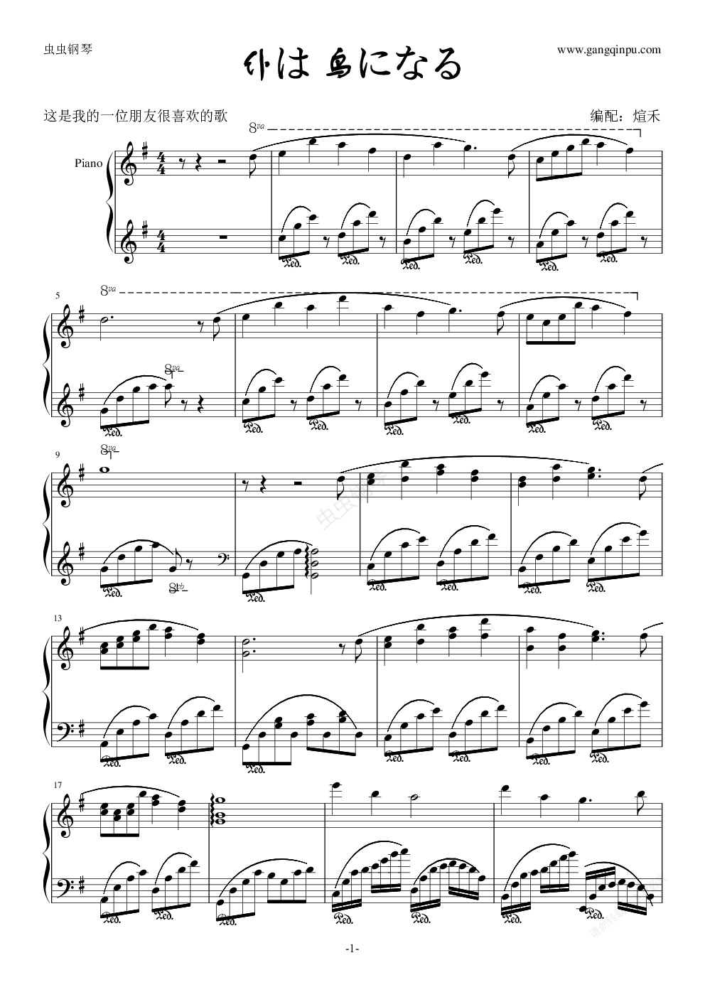 钢琴谱:仆は 鸟になる
