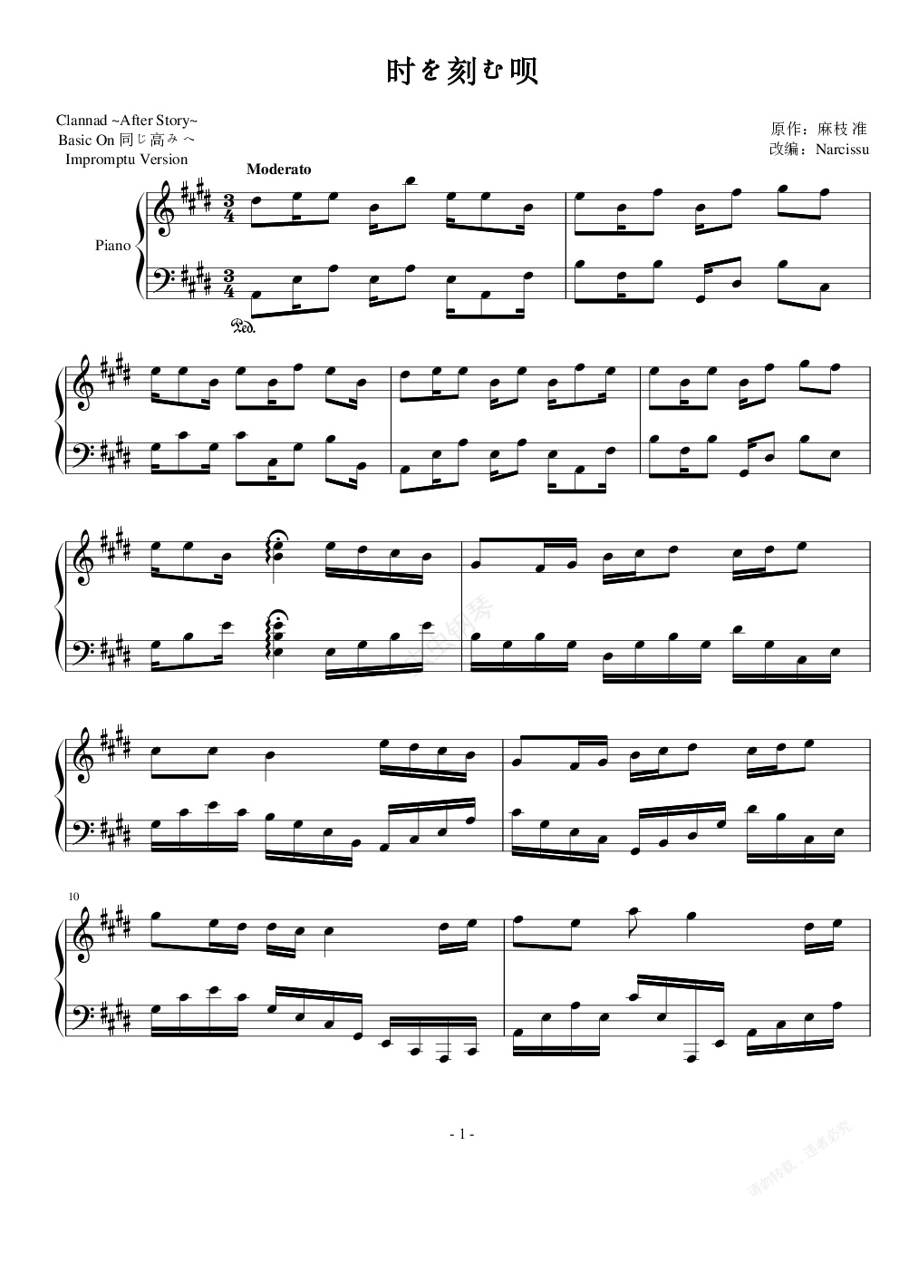 钢琴谱:时を刻む呗