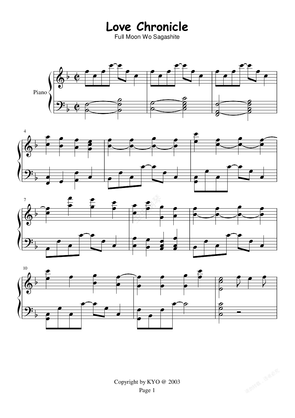 钢琴谱:Love Chronicle