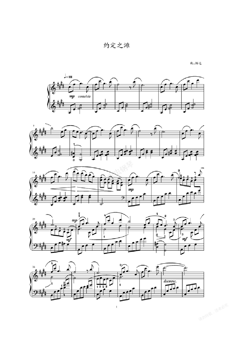 钢琴谱:约定之滩