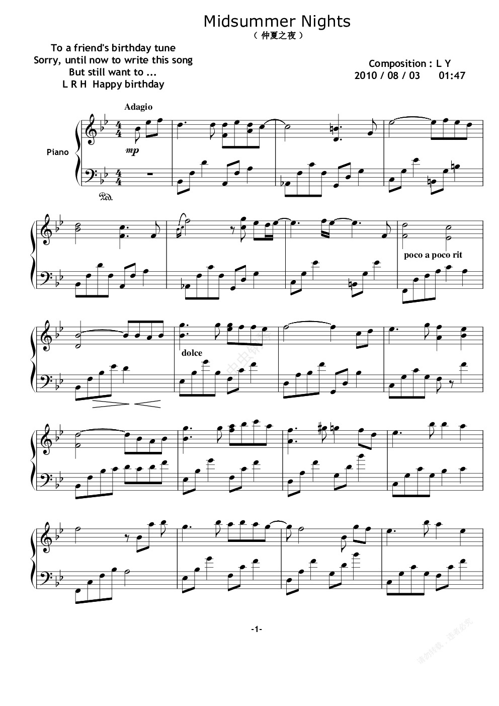 钢琴谱:Midsummer Nights ( 仲夏之夜)