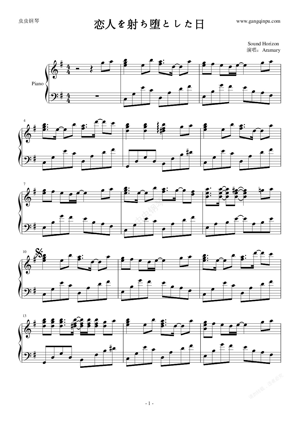 钢琴谱:Sound Horizon 恋人を射ち堕とした日