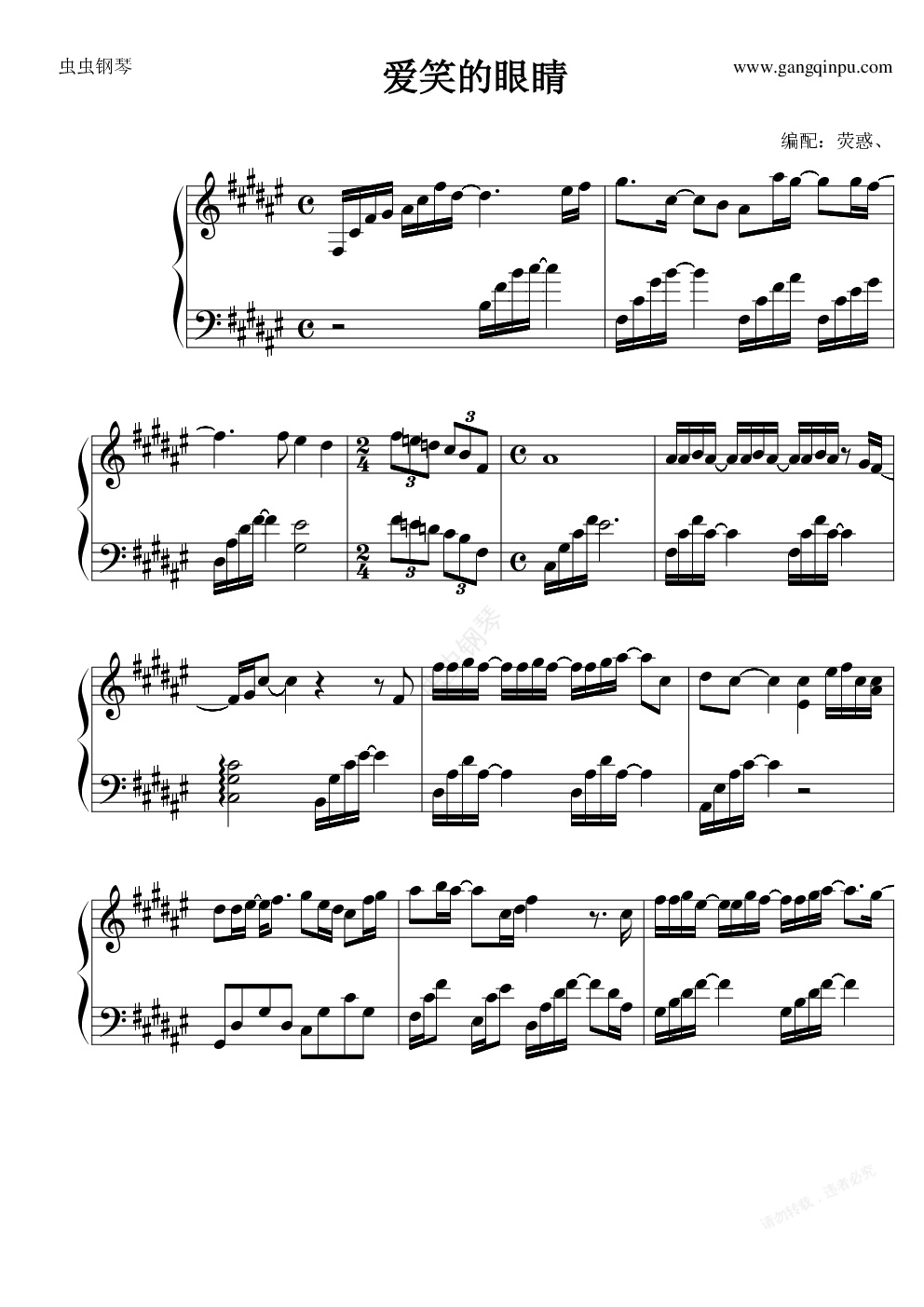 钢琴谱:爱笑的眼睛(荧惑、)