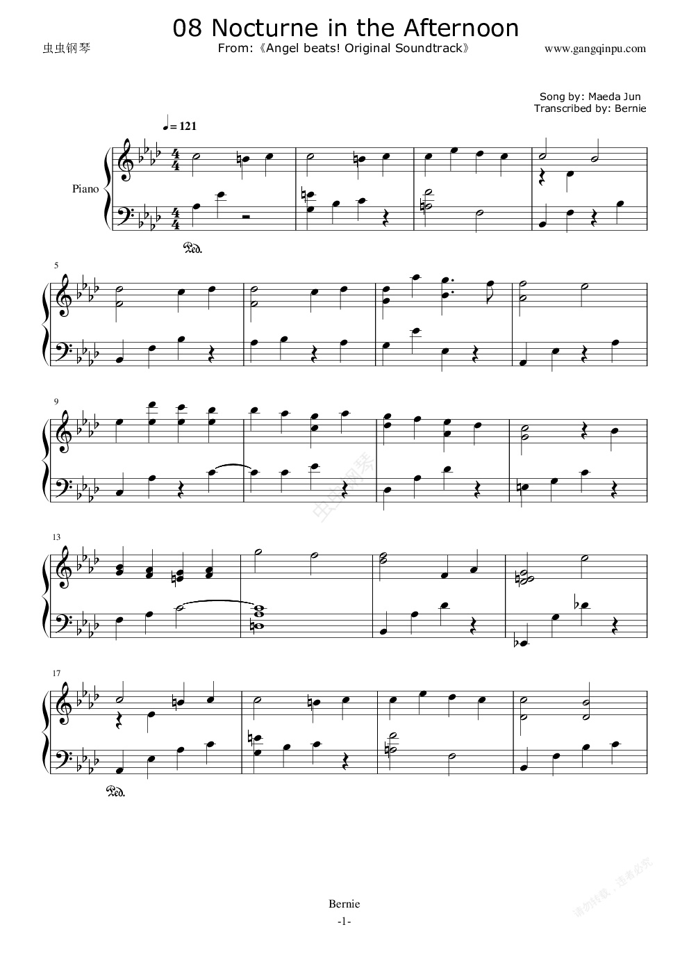 钢琴谱:Angel Beats! OST Nocturne in the Afternoon