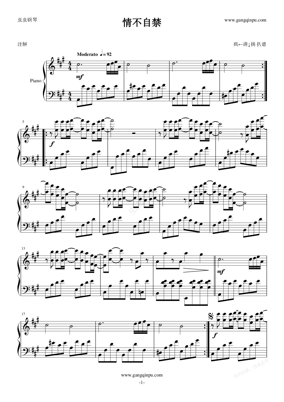 钢琴谱:情不自禁
