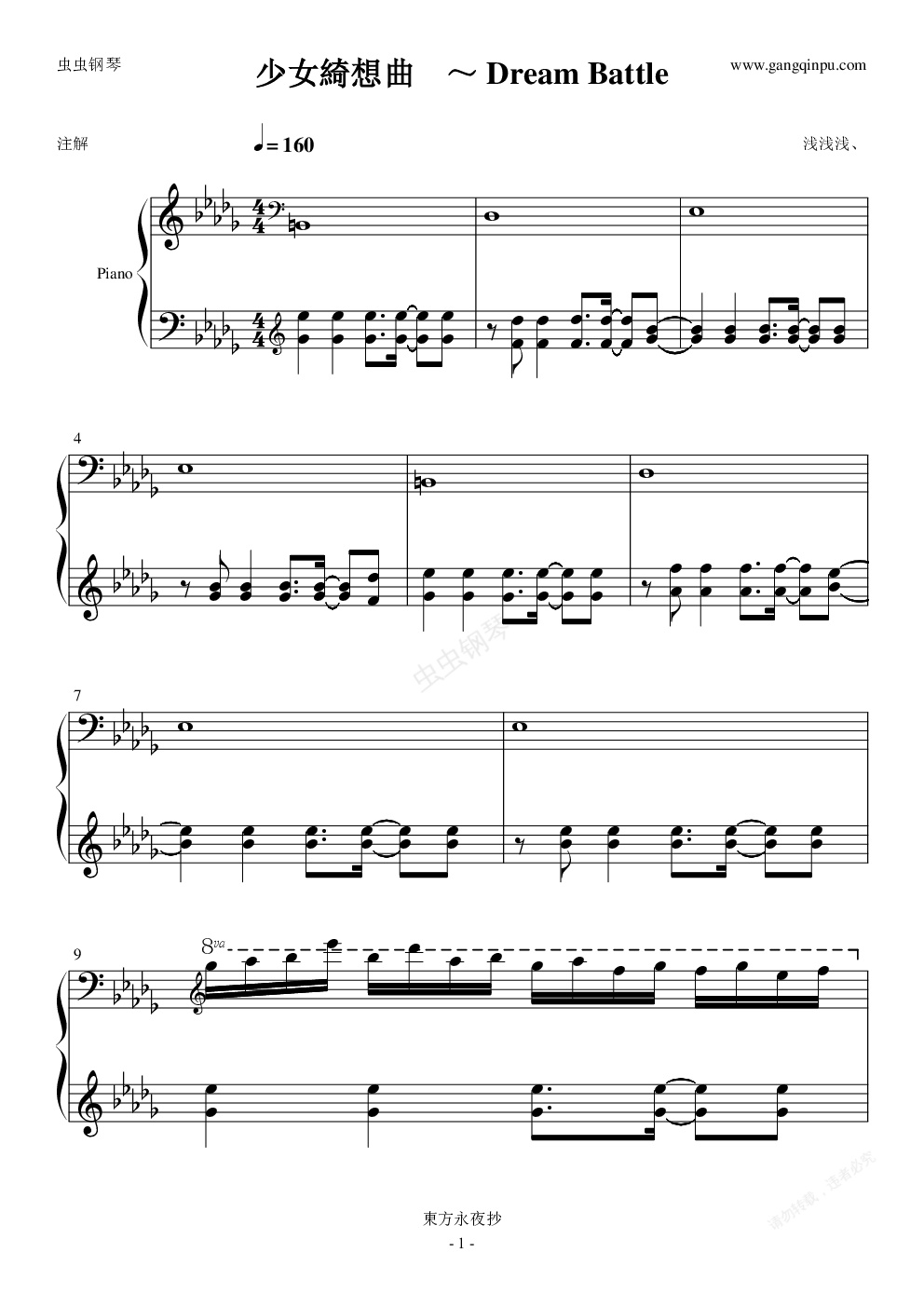 钢琴谱:【東方永夜抄】少女綺想曲 ~ Dream Battle