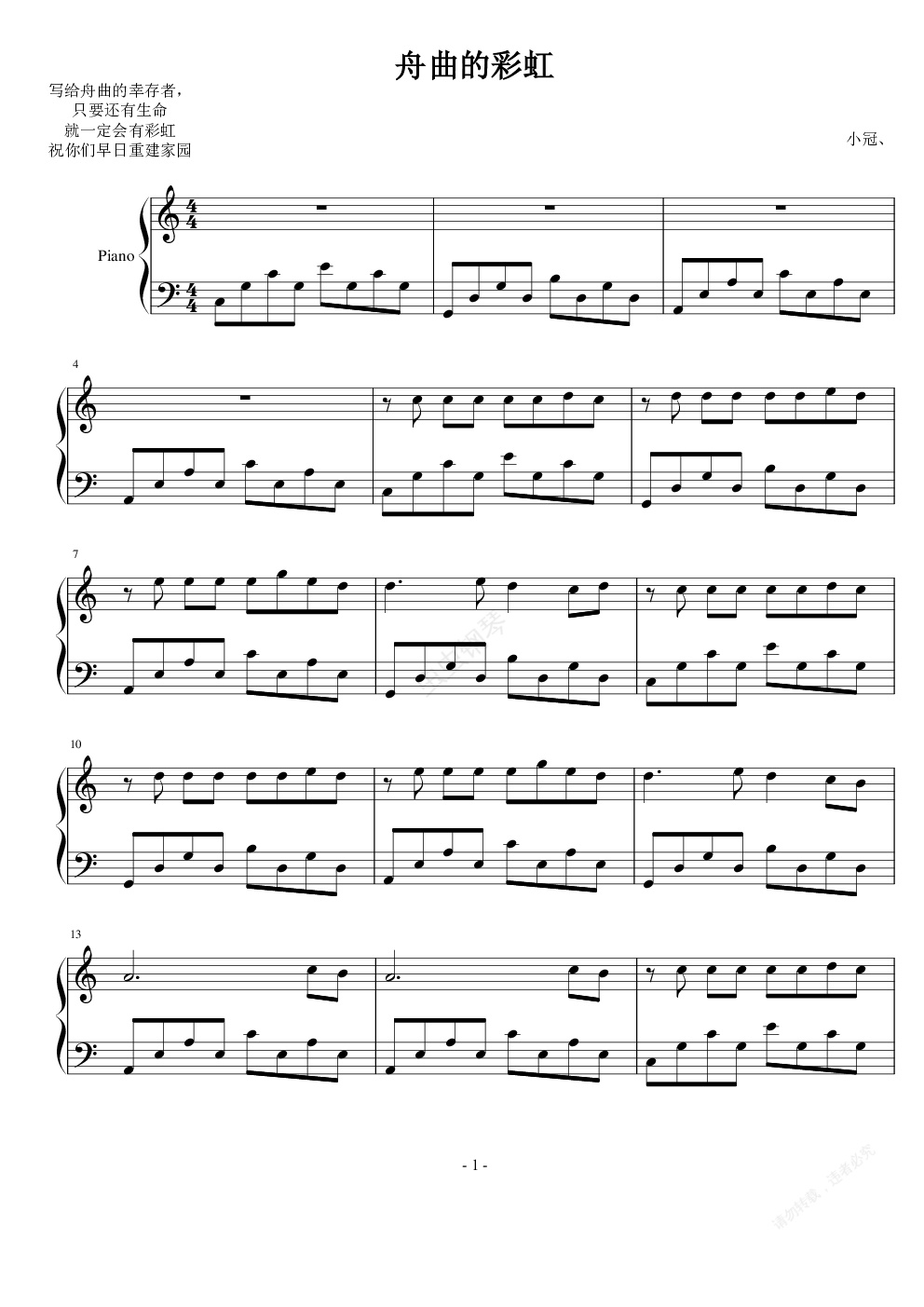 钢琴谱:舟曲的彩虹