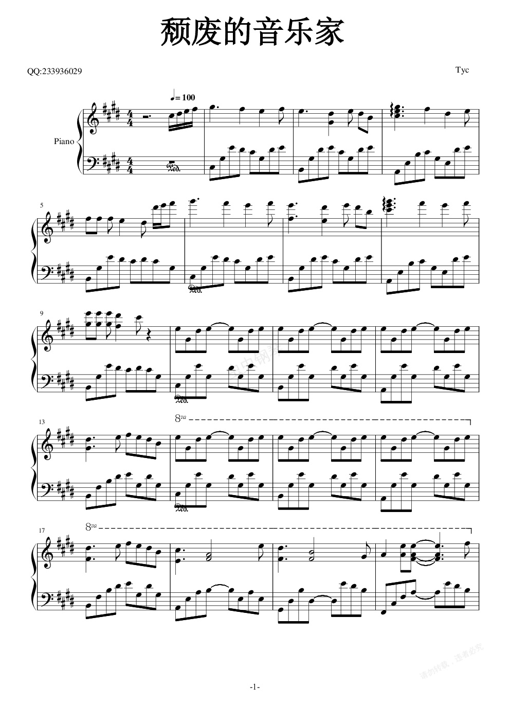 钢琴谱:颓废的音乐家