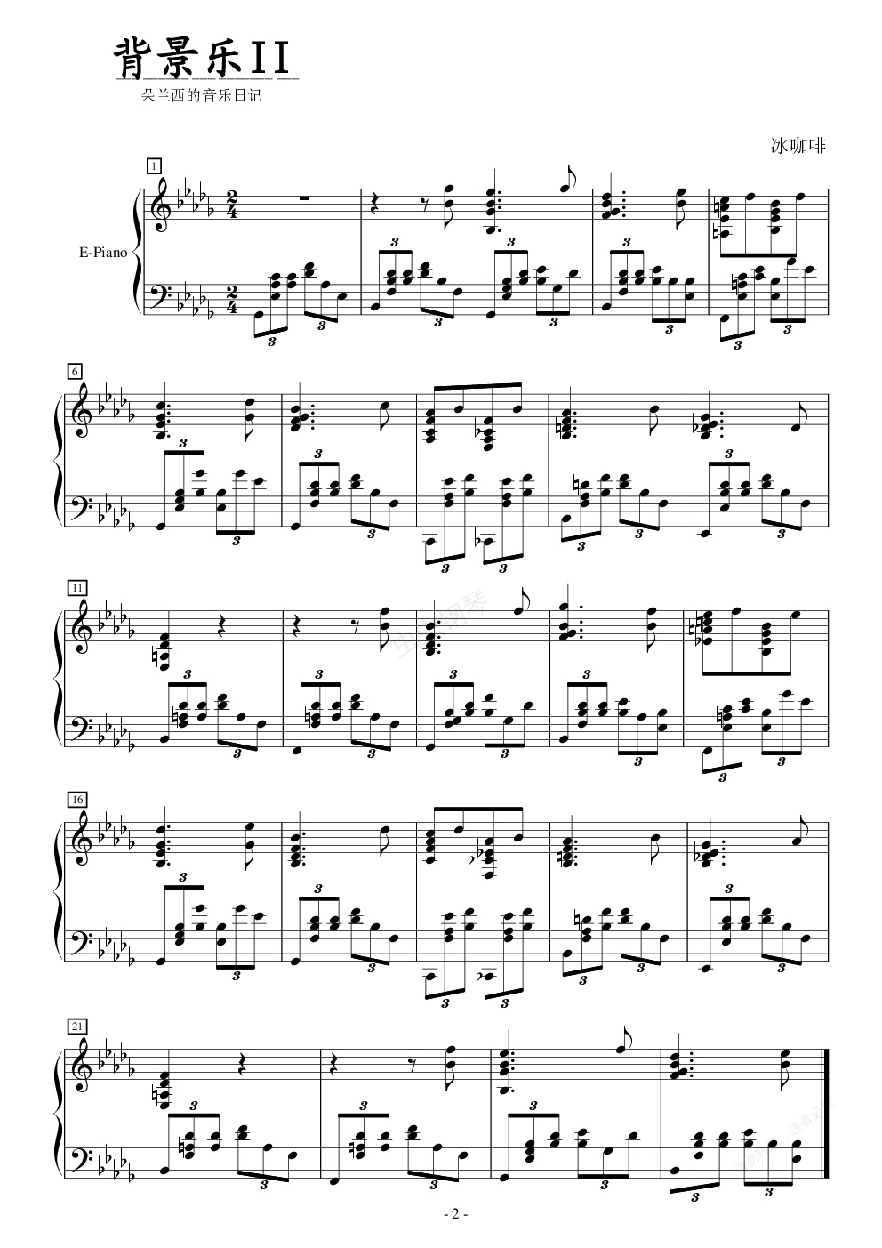 特别注明:朵兰西的音乐日记进入古典作品改编收录阶段,所有编入的日记都以《背景乐XX》命名,原创性非100,根据需要改动的大小,原创性不等。如背景乐I以拉赫玛尼诺夫第二钢琴奏鸣曲第二乐章正主题为主体,加入一些变奏,保留和声骨架。背景乐II以拉赫玛尼诺夫第四钢琴协奏曲第三乐章一个悠扬的小提琴经过句为蓝本进行改写等。特此注明,以免误解。