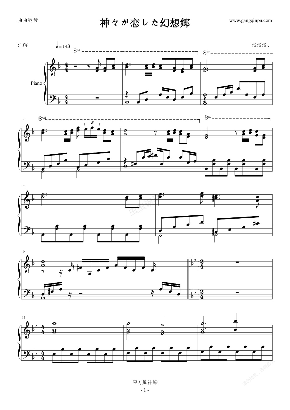 钢琴谱:【東方風神録】神々が恋した幻想郷
