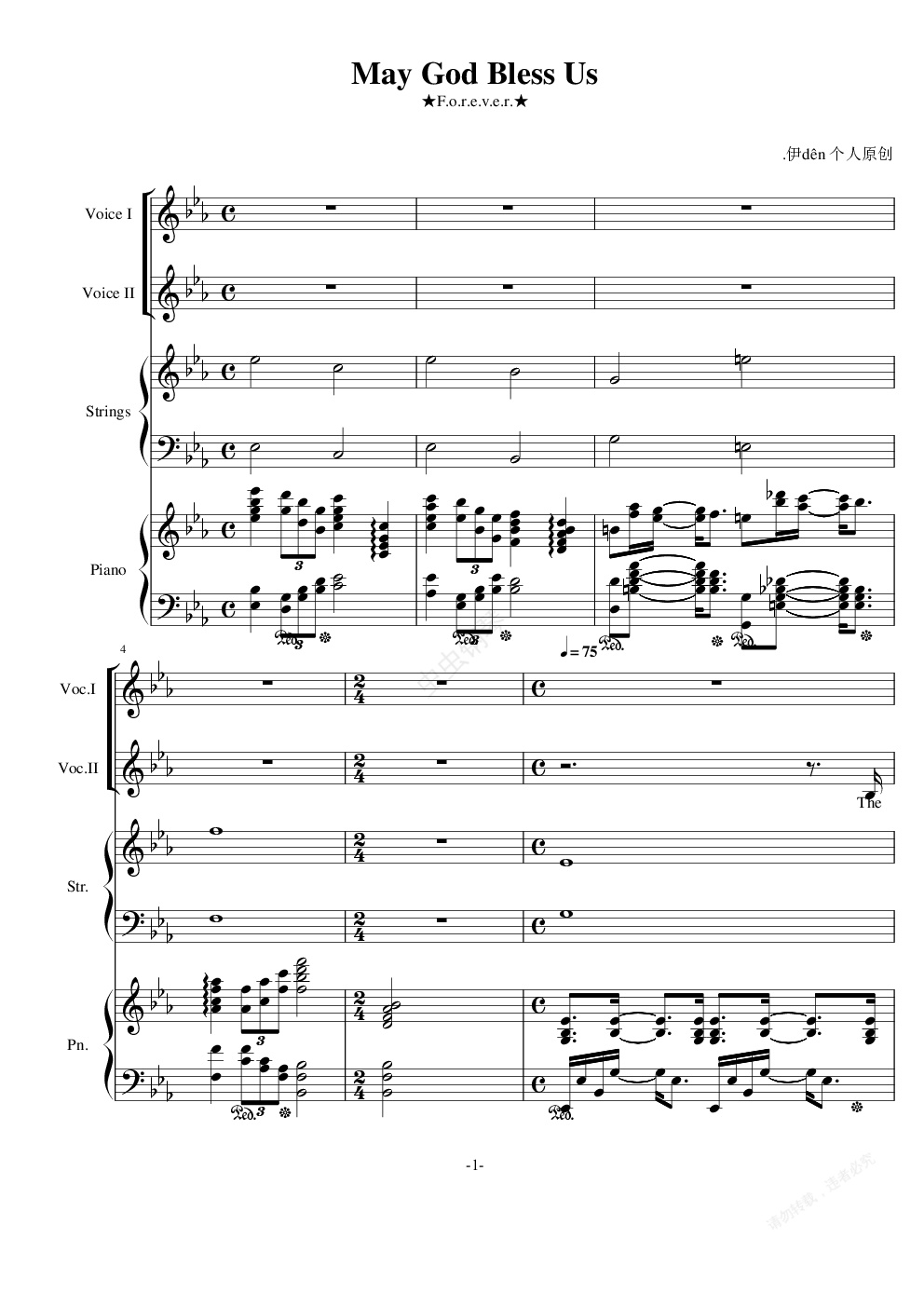 (本曲加了弦乐配四部和声(只求平稳)为背景,Voice I(女声)采用长笛音色,Voice II(男声)采用法国号音色)