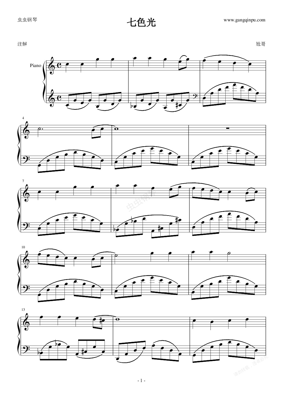 钢琴谱:神之七色光原版