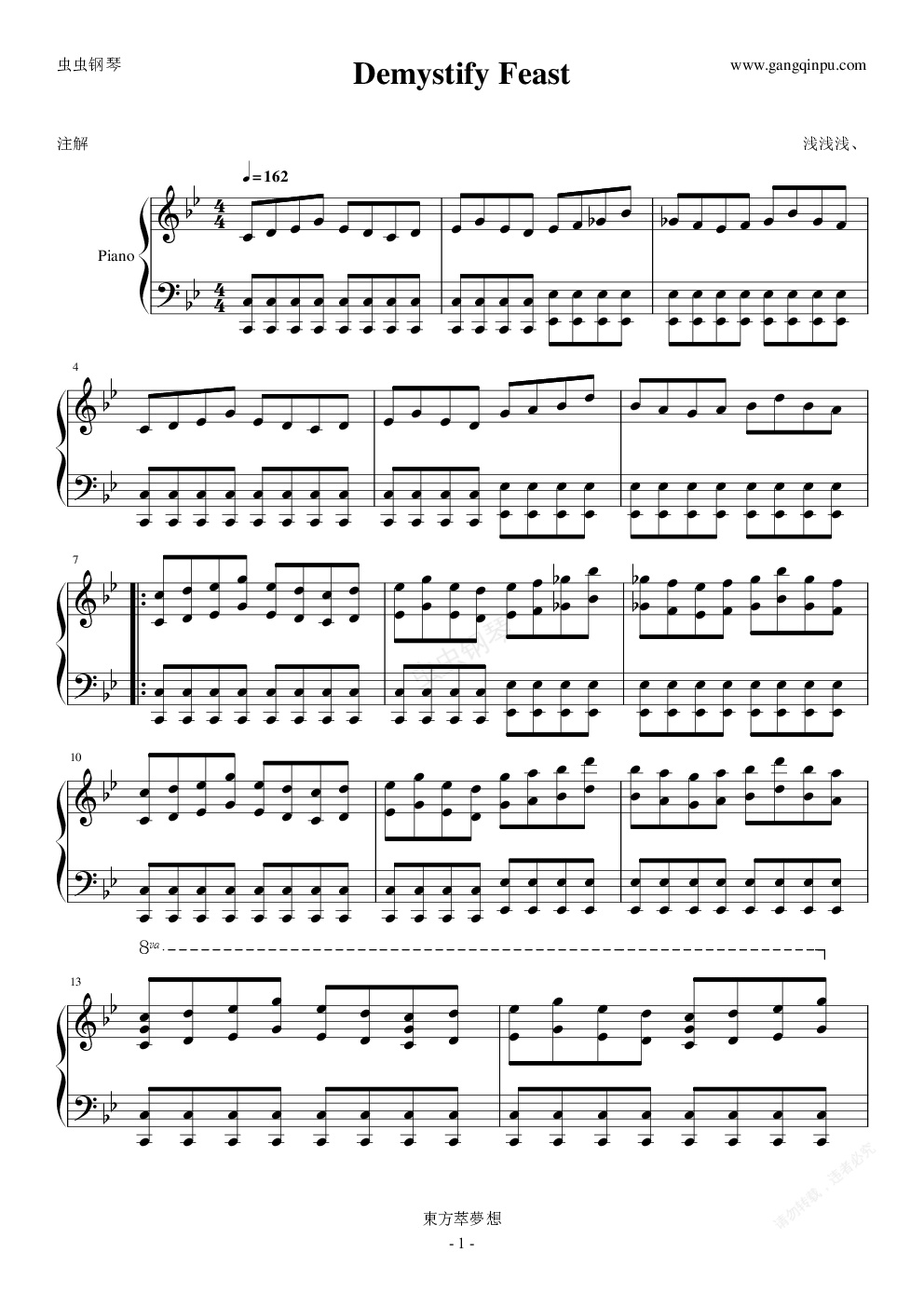 钢琴谱:【東方萃夢想】Demystify Feast