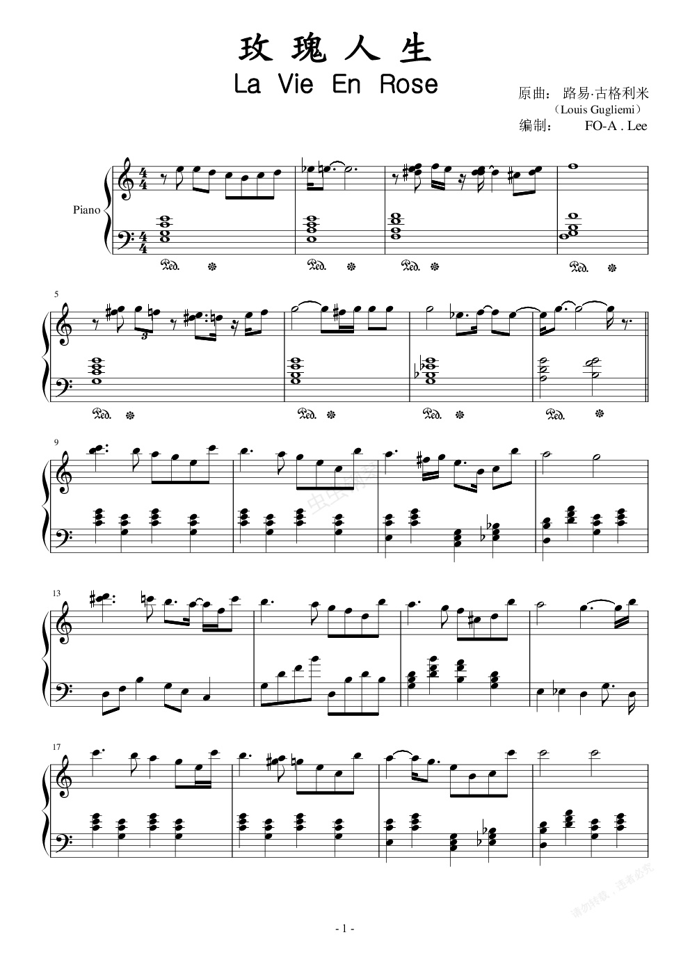 《玫瑰人生》法国民谣。是法国著名女歌手艾迪特·皮雅芙的代表作。歌词由皮雅芙亲自填写,旋律则由路易·古格利米创作。1946年,皮雅芙首次演唱《玫瑰人生》。一开始,大家都不以为这首歌会那么的成功,但是很快,《玫瑰人生》就风靡整个法国。这首歌也将皮雅芙推向法国香颂天后的地位。这首歌成为不少歌唱家的演唱标准,几十年来,已经被很多歌手以不同方式各自演绎。1998年,《玫瑰人生》登上“格莱美名人殿堂”。
