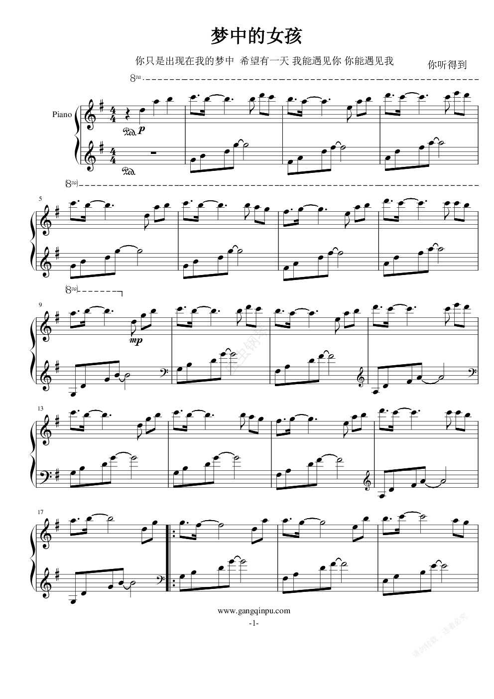 钢琴谱:梦中的女孩