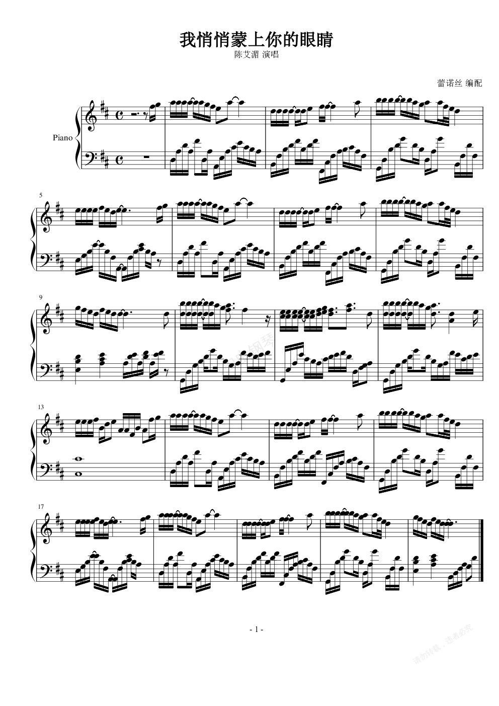 钢琴谱:我悄悄蒙上你的眼睛(编曲:蕾诺丝)