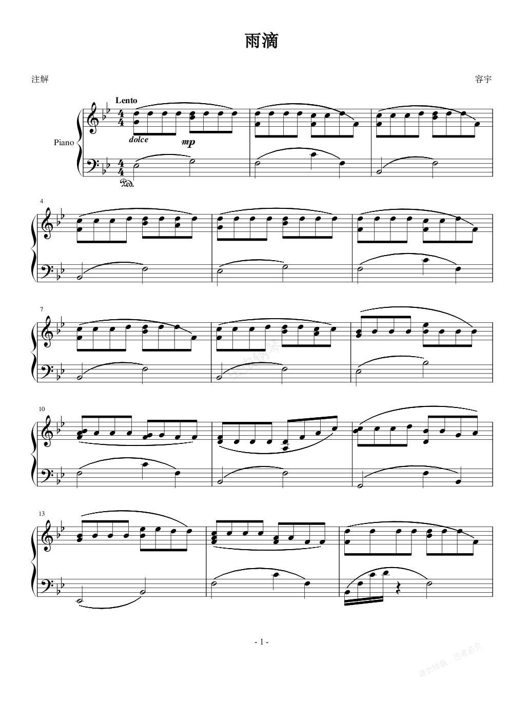 钢琴谱:雨滴