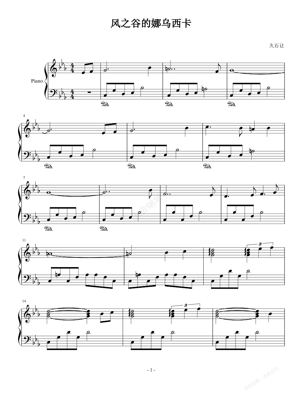钢琴谱:风之谷风之谷的娜乌西卡(有修改)
