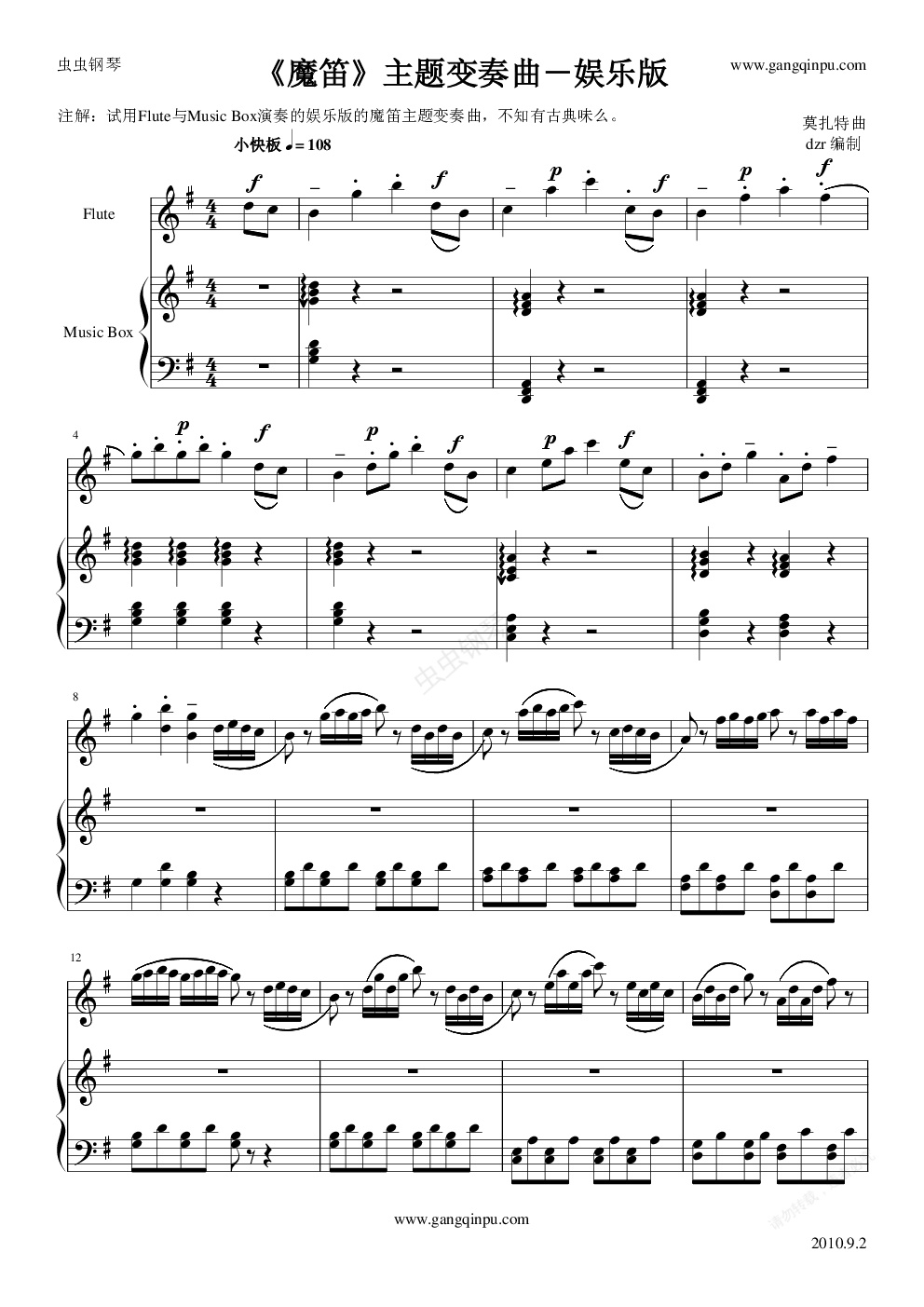 钢琴谱:《魔笛》主题变奏曲-娱乐版