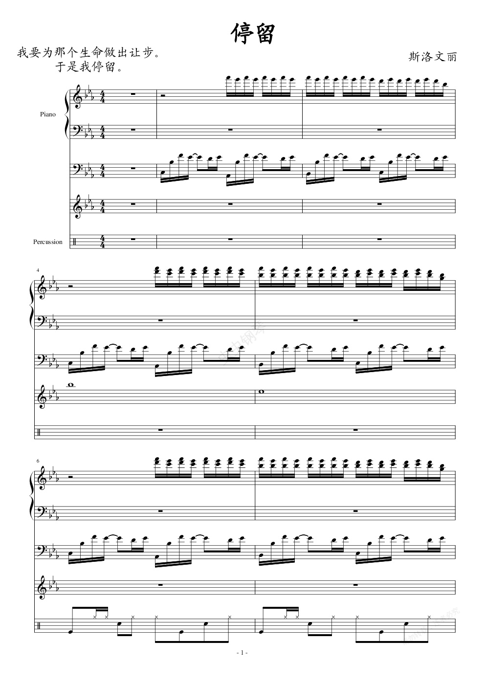 钢琴谱:停留