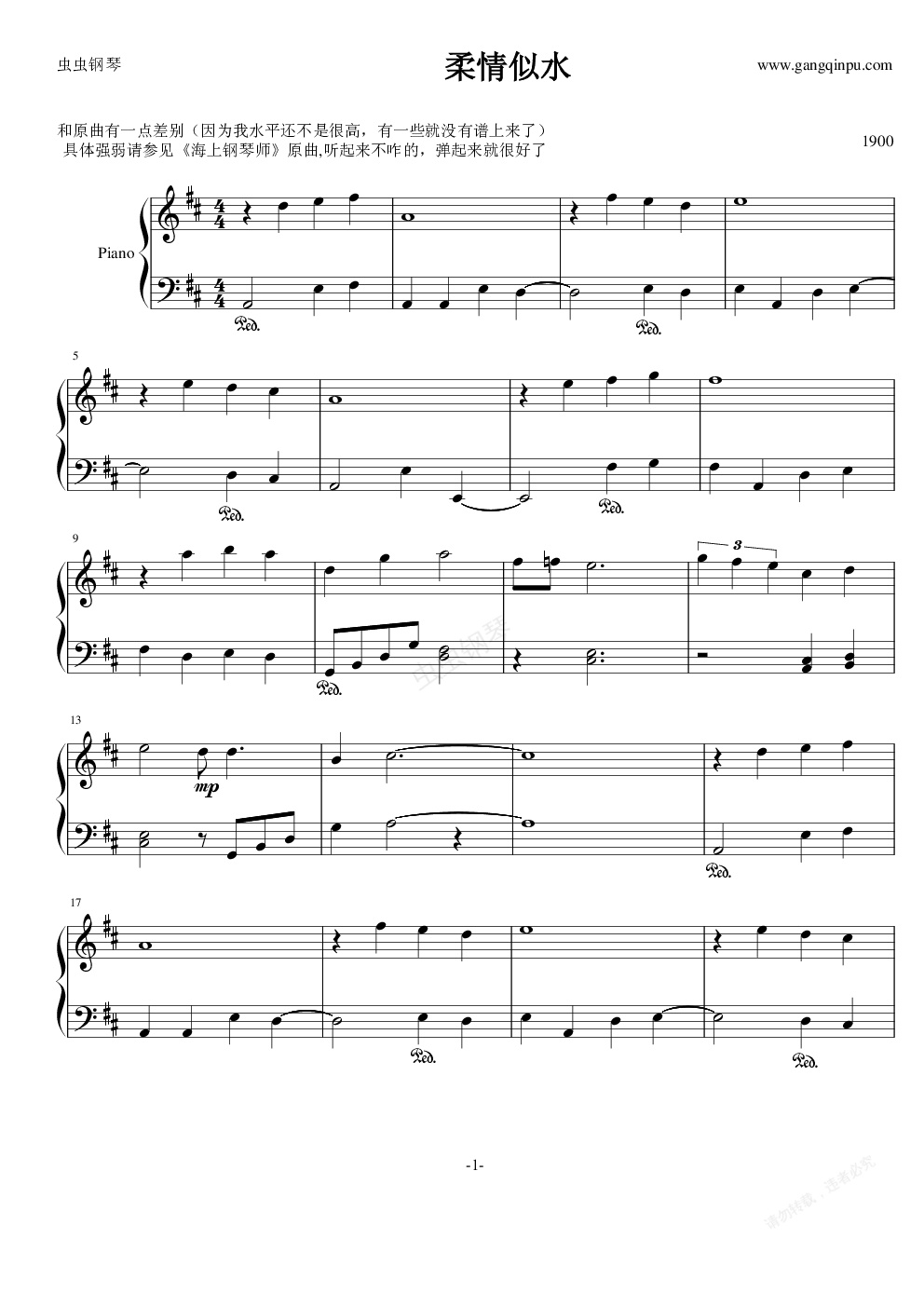 钢琴谱:海上钢琴师——柔情似水(VST合成不好听)