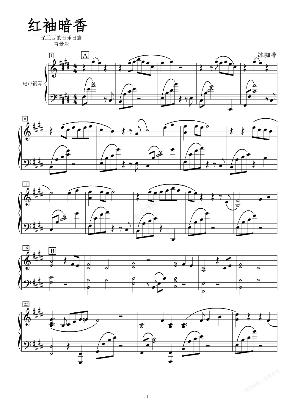 钢琴谱:红袖暗香 背景乐
