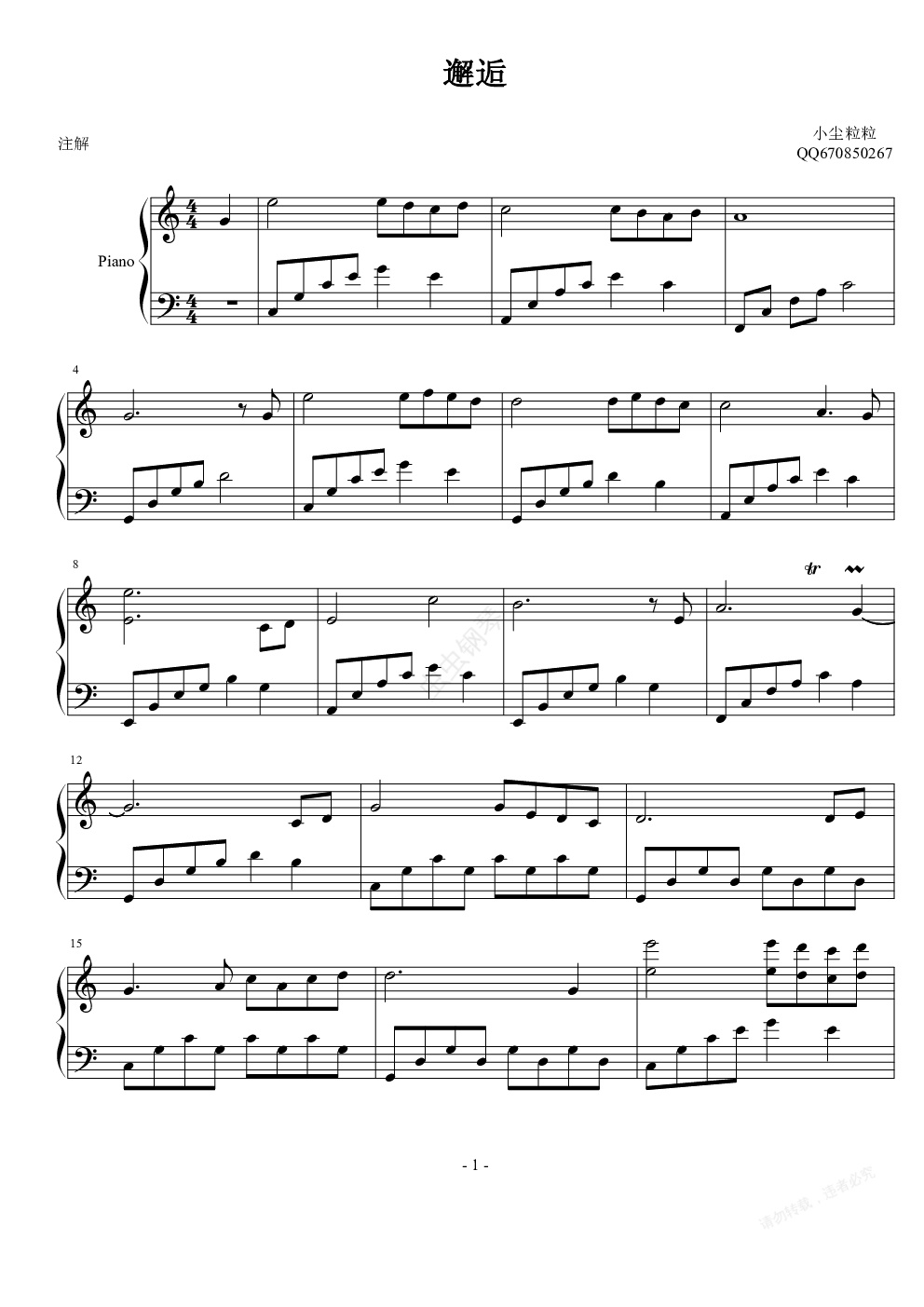 钢琴谱:邂逅
