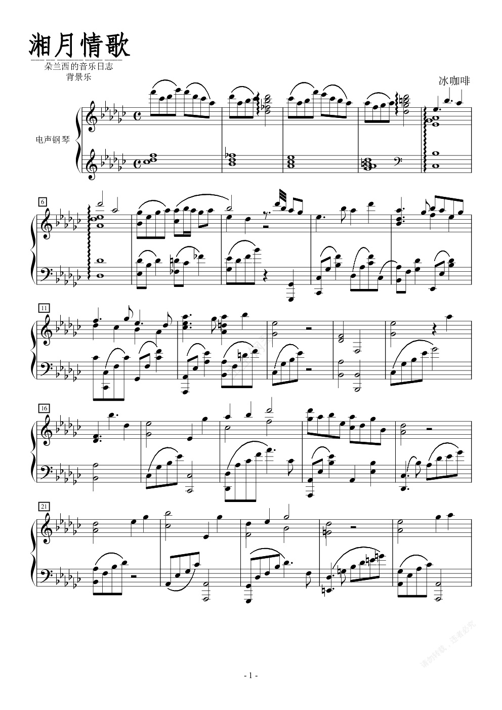 钢琴谱:湘月情歌
