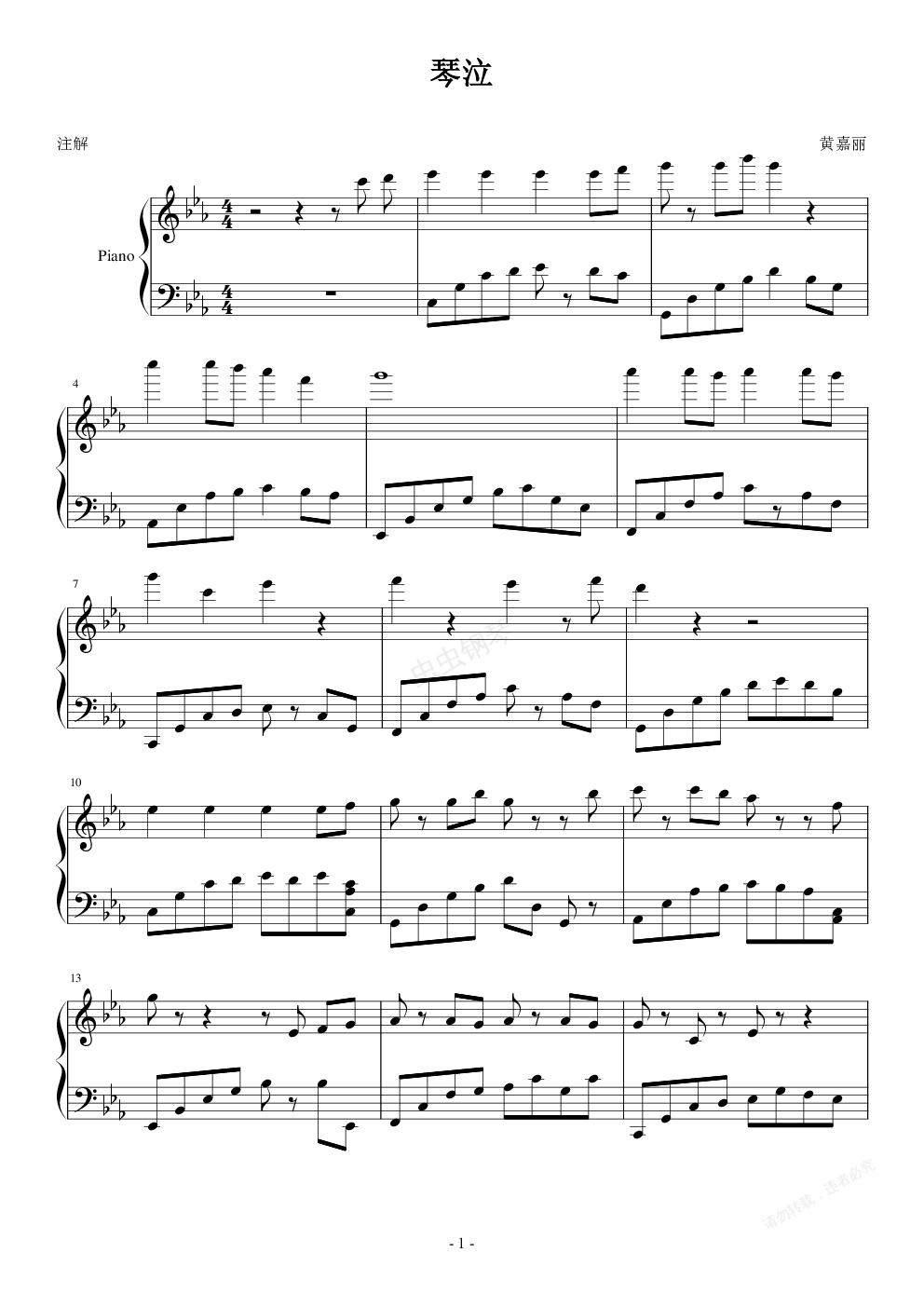钢琴谱:琴泣