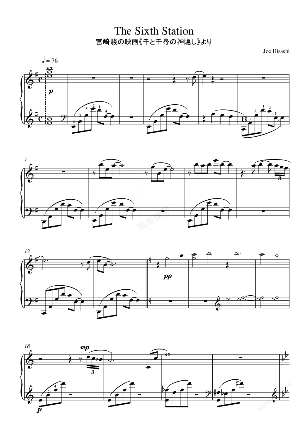 钢琴谱:The Sixth Station 选自电影《千与千寻》