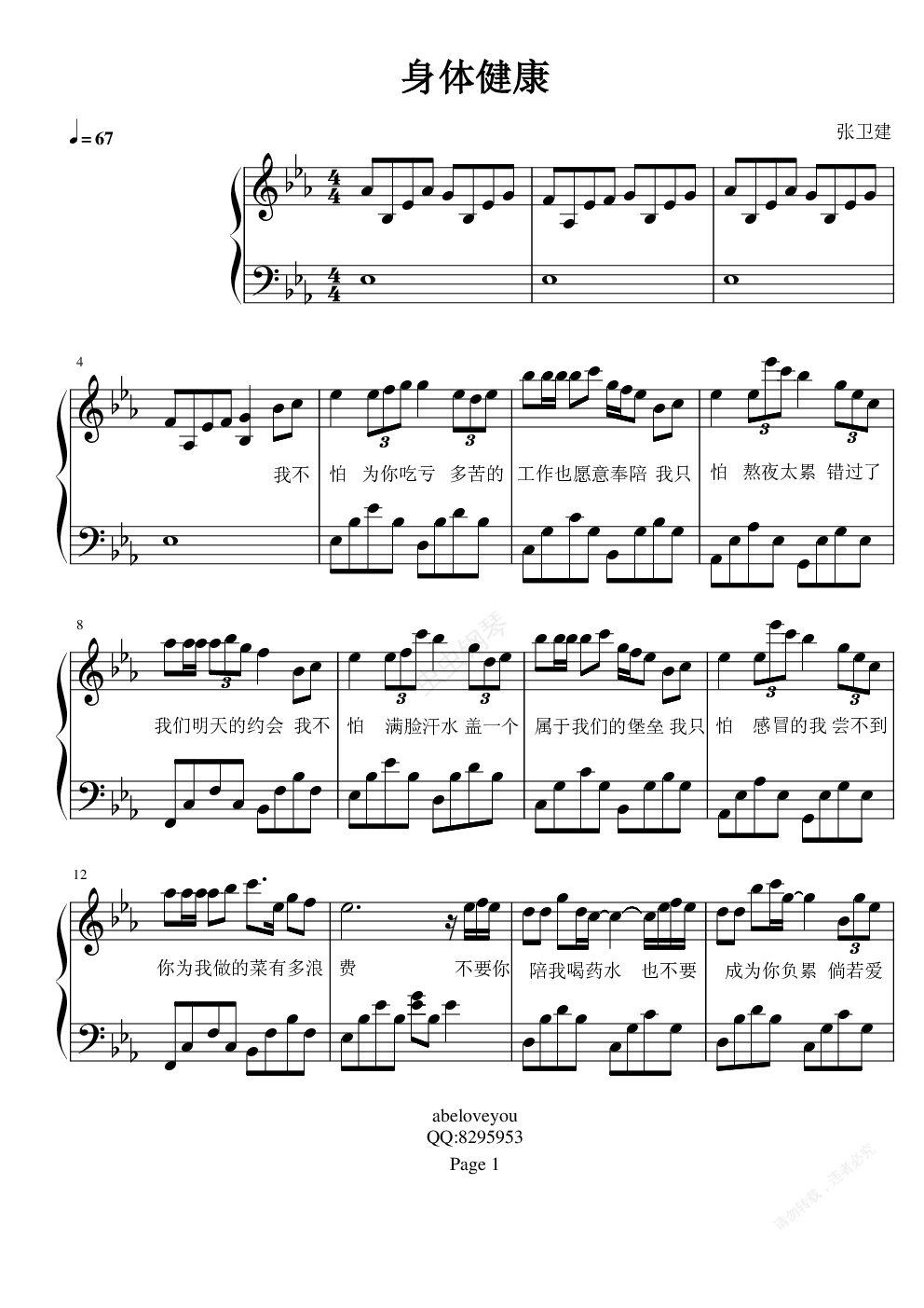 钢琴谱:身体健康